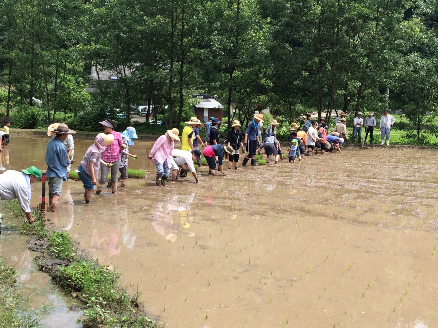 稲刈りイベントの田植えの様子。