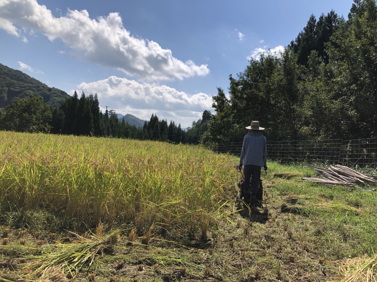 樋桶の郷のみなさんが放棄地の管理や、田畑の管理をしてくれているおかげで、移住が決まった後もすぐに農地を借りることができました。お借りした田んぼは自分たちで草刈りをして、整備をし、現在に至っています。地元の方も手伝ってくれました。今年は180kgほどの米が獲れました。