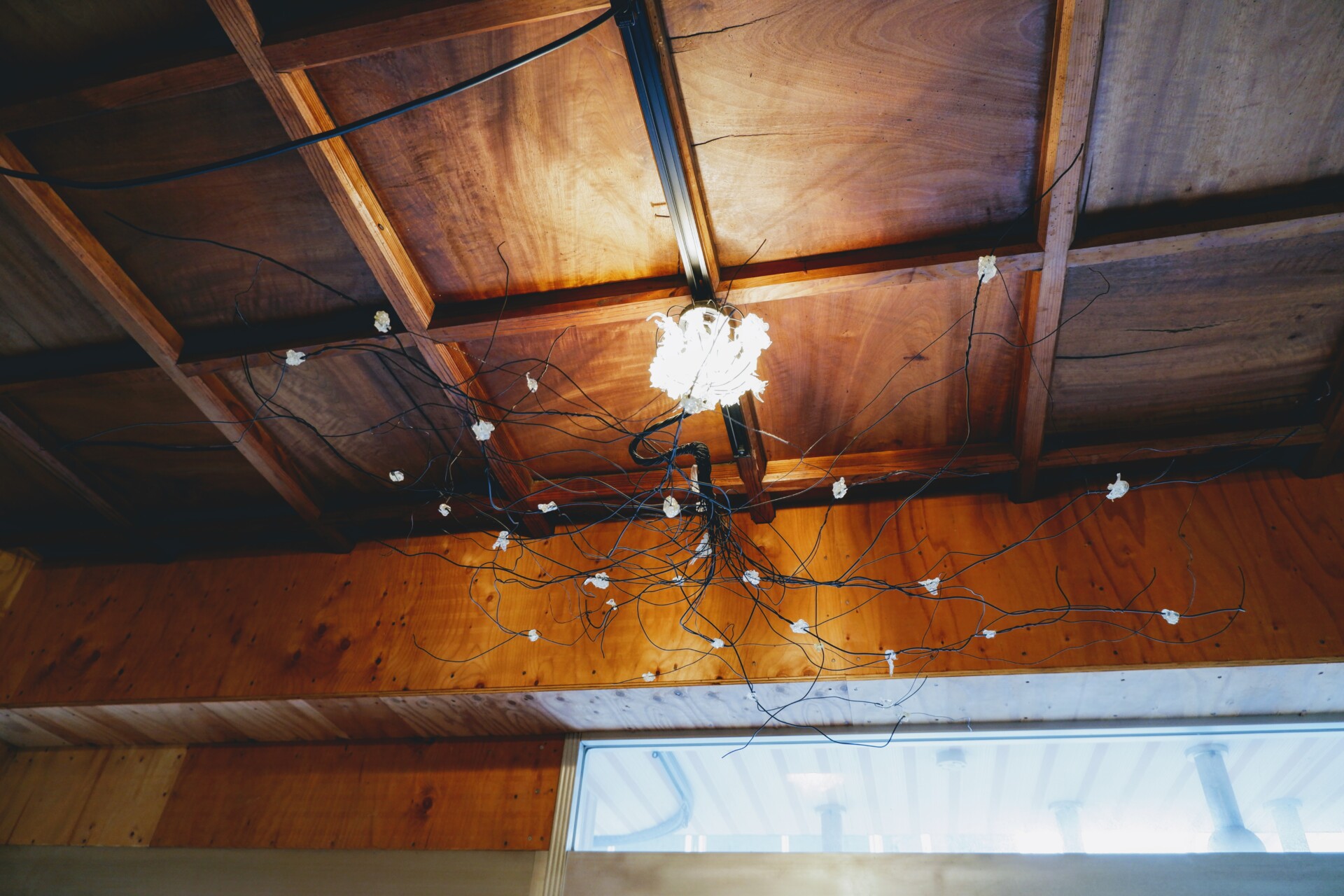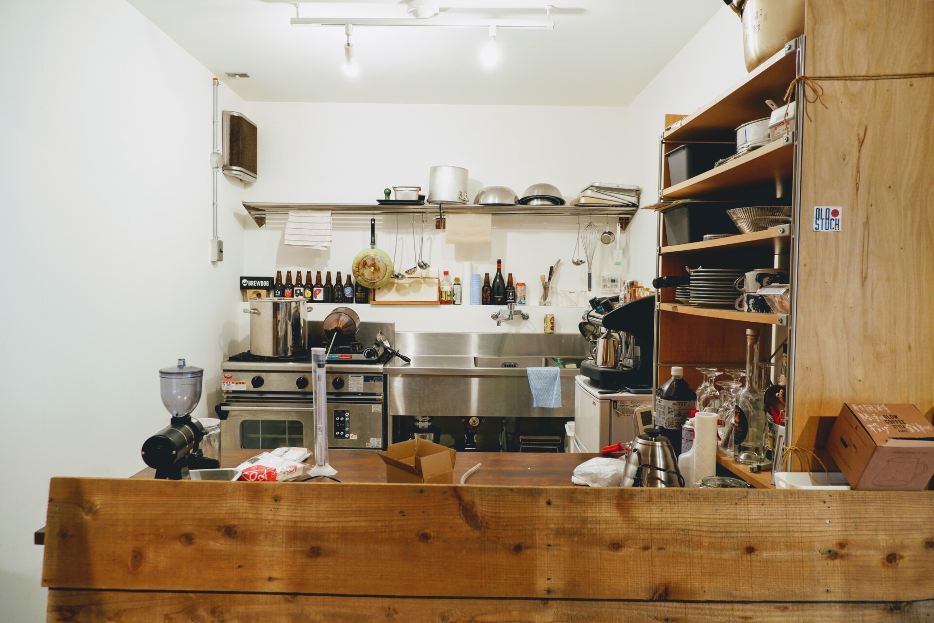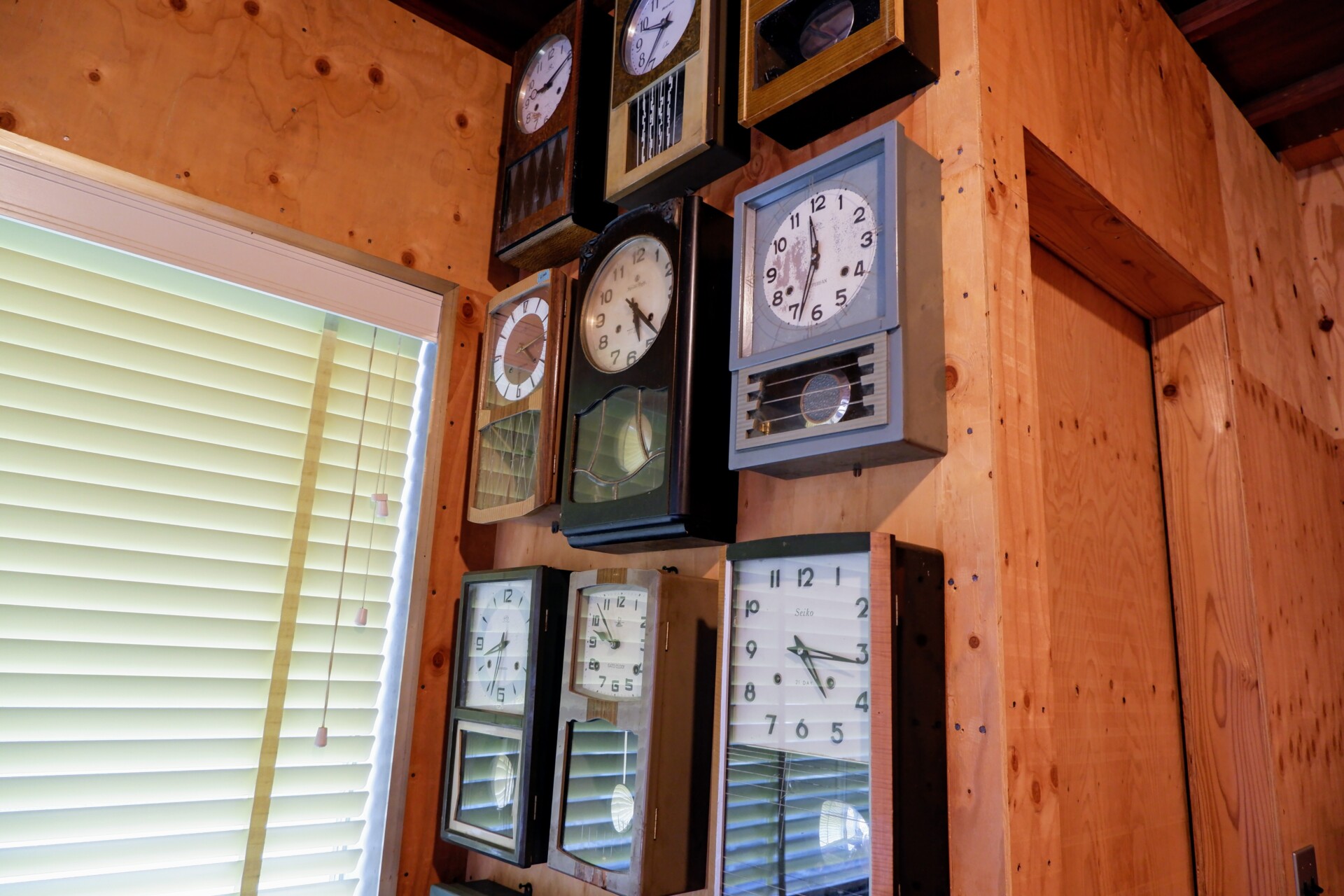 1Fの一番端にあった元時計店は「チクタクテンポ」という名前でフリースペースとなっています。前の時計店の看板がそのままあり、時計も少し残しているので昔の雰囲気を残しつつも、中は全面に木が貼られ、温かみのある空間になっています。予約が入っていない時は誰でも利用でき、ここで打合せをしたり併設されているキッチンでコーヒーを焙煎したりしているそうです。