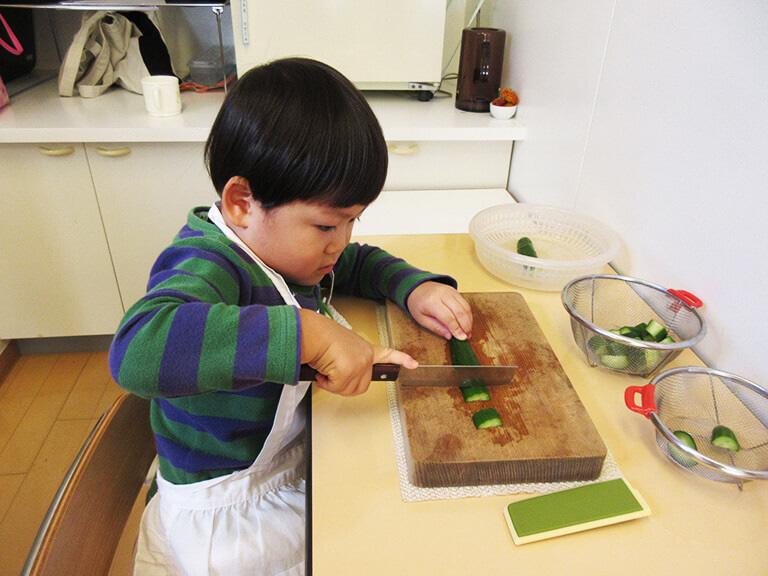 乳児には布おむつを使用し、テレビがない環境で毎日裸足で全身を使いながらたくさん遊ばせてくれます。給食は旬の食材を中心におやつも全て手作りで家庭の味にこだわり、容器もプラスチックではなく陶器のものを使用しています。