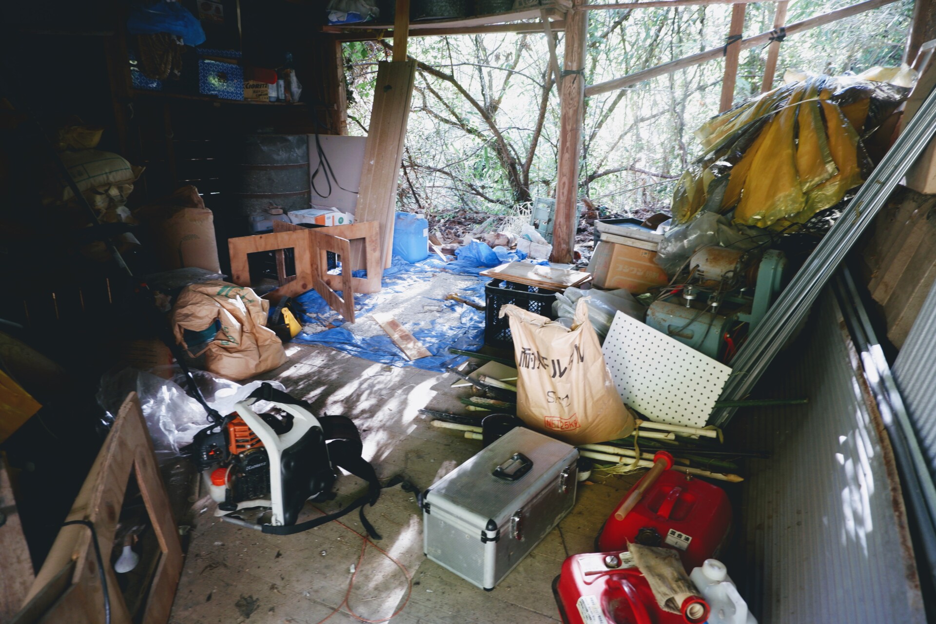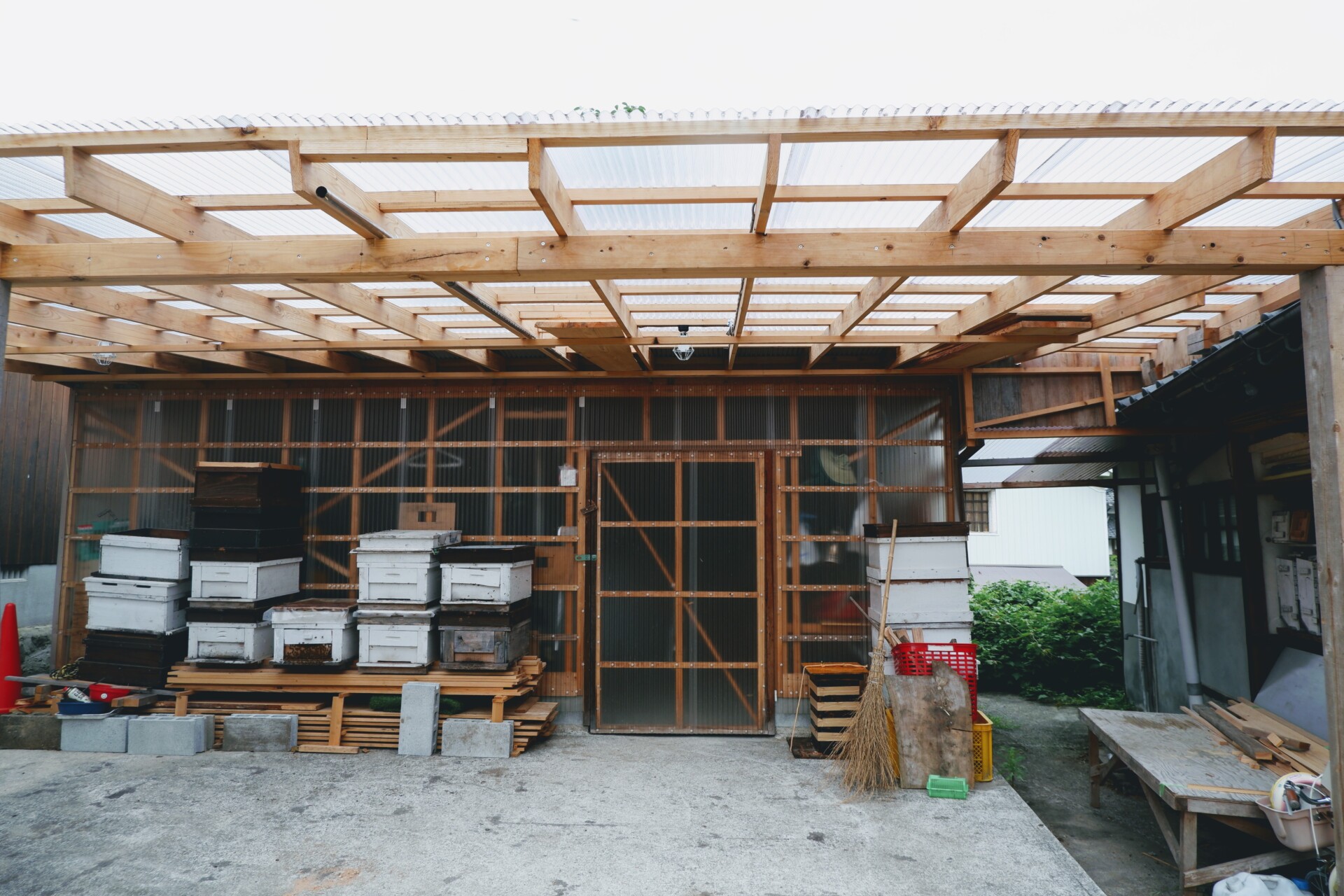 養蜂のための道具を入れている倉庫は完全な手作り。