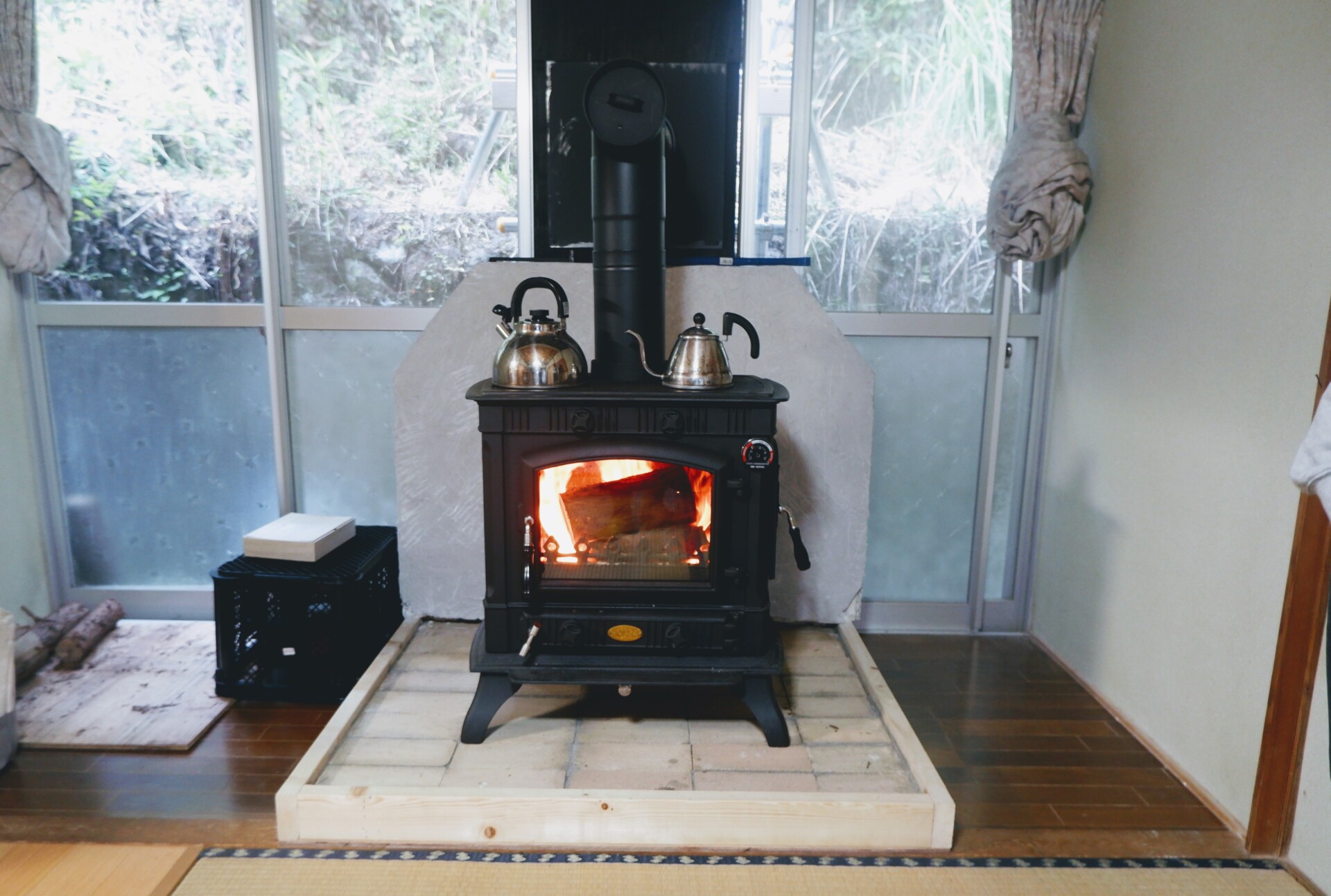 現在手直し真っ最中。寒さ対策で薪ストーブも自分たちで設置。