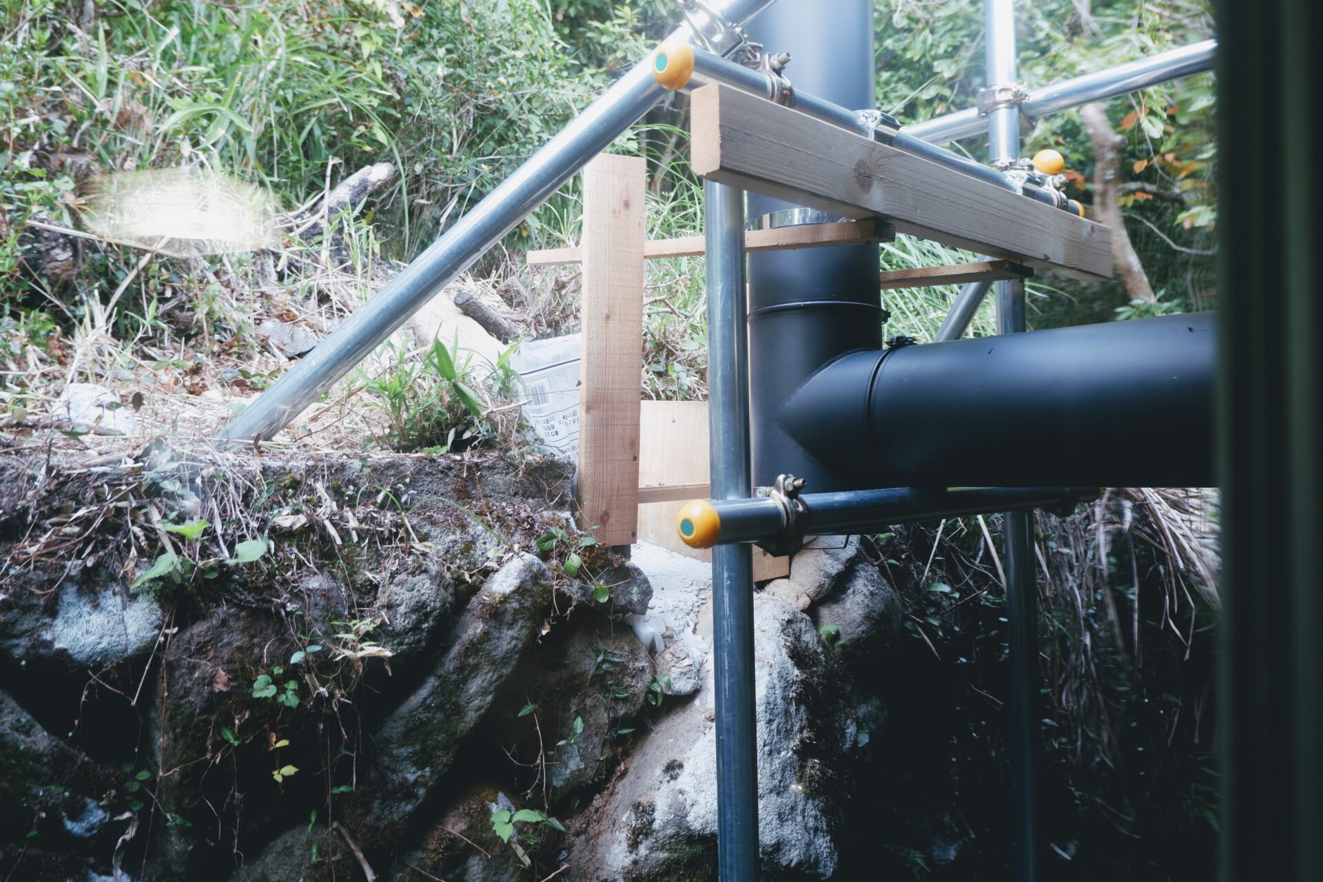 地元の方に相談したところ、地域独自で作った地下水を利用した浄水システムがあることがわかり、地域の方に手伝ってもらいながら、無事に浄水を引くことができたのだとか。業者に頼むのではなく、集落の方と一緒に竪山さんご自身も工事に参加され、約2ヶ月かけて引いたそうです。