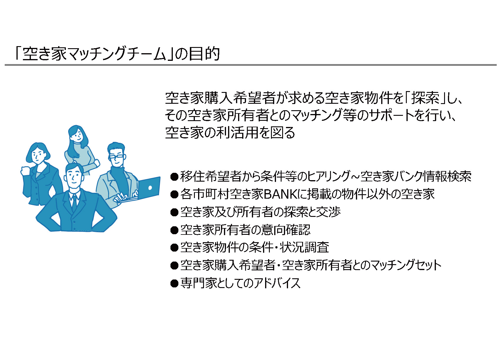- 空き家探しのお手伝い「空き家マッチングチーム」