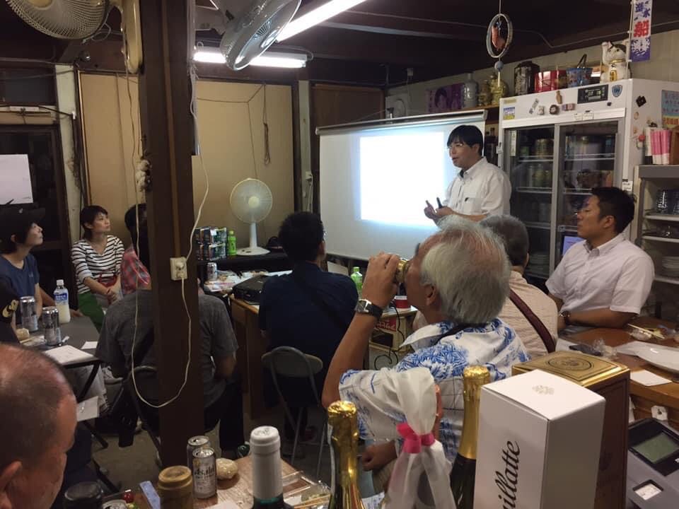 最初の年は運動会を神社で行い、ディナーショーを船頭町の「茶蔵」というところでやって、打ち上げとして町に出ていくという流れでやったところ、なんとお客さんは観客兼出演者の7人だけだったそう。