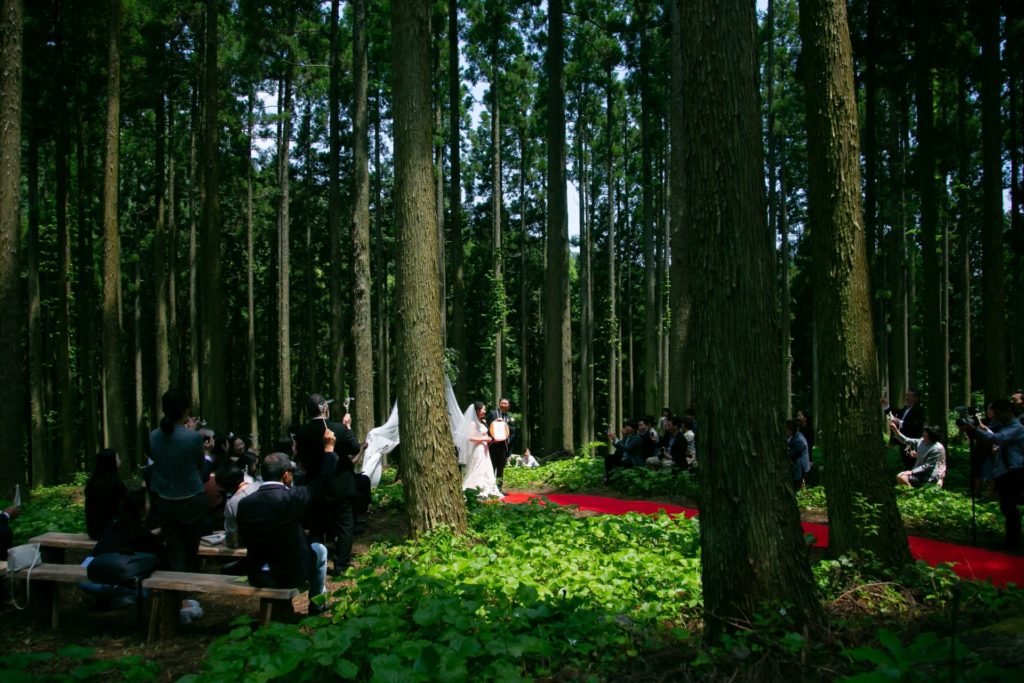 地元の方々に手伝ってもらい実現した「木漏れ日の森」で結婚式。