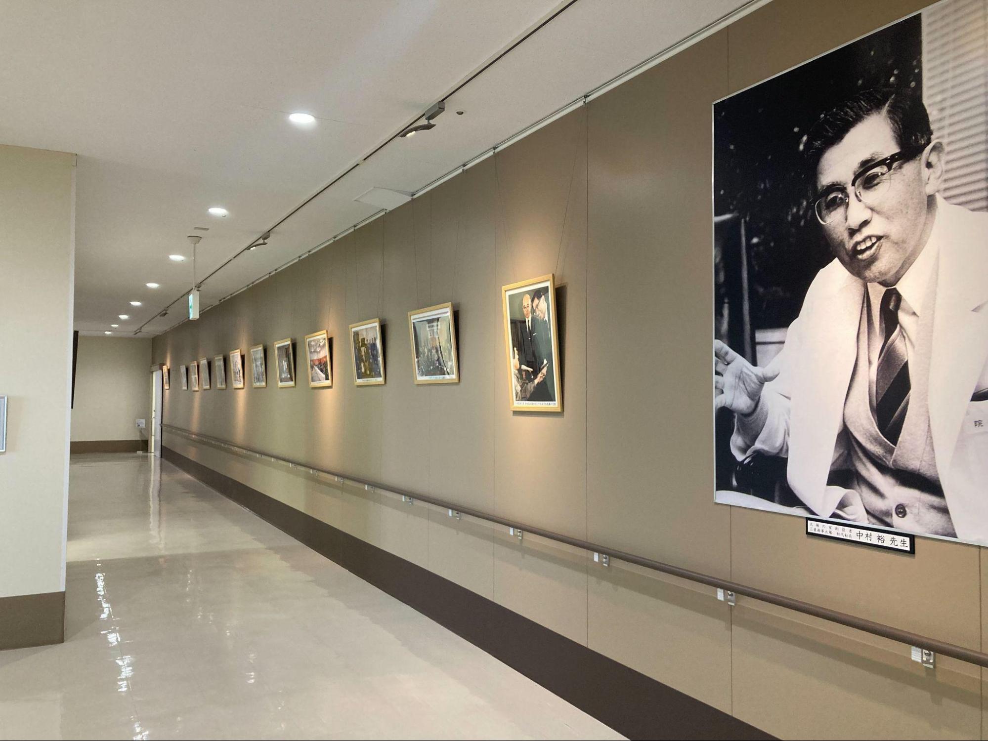 T字の廊下には車いす同士の接触事故を避けるために半円の鏡を設置している