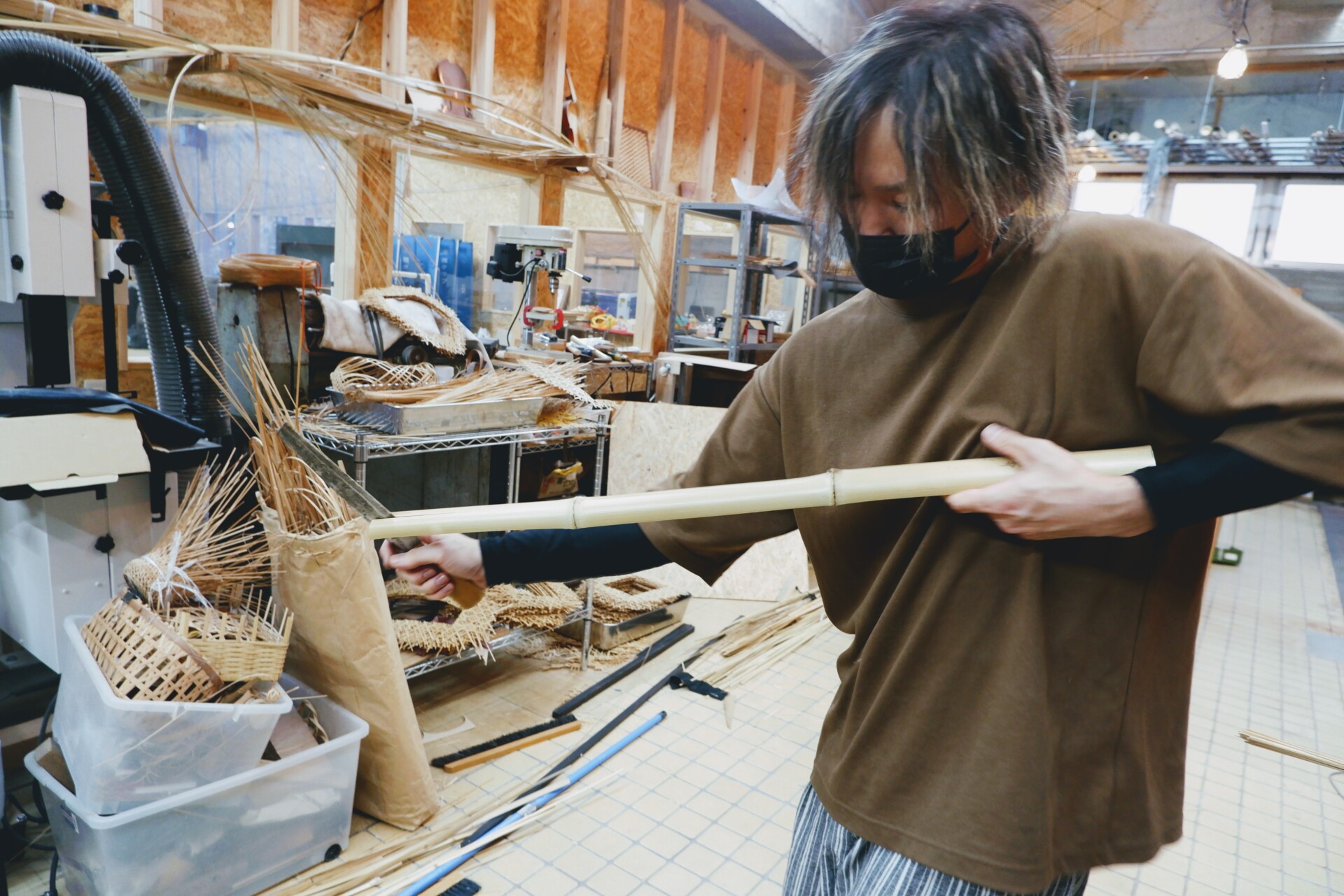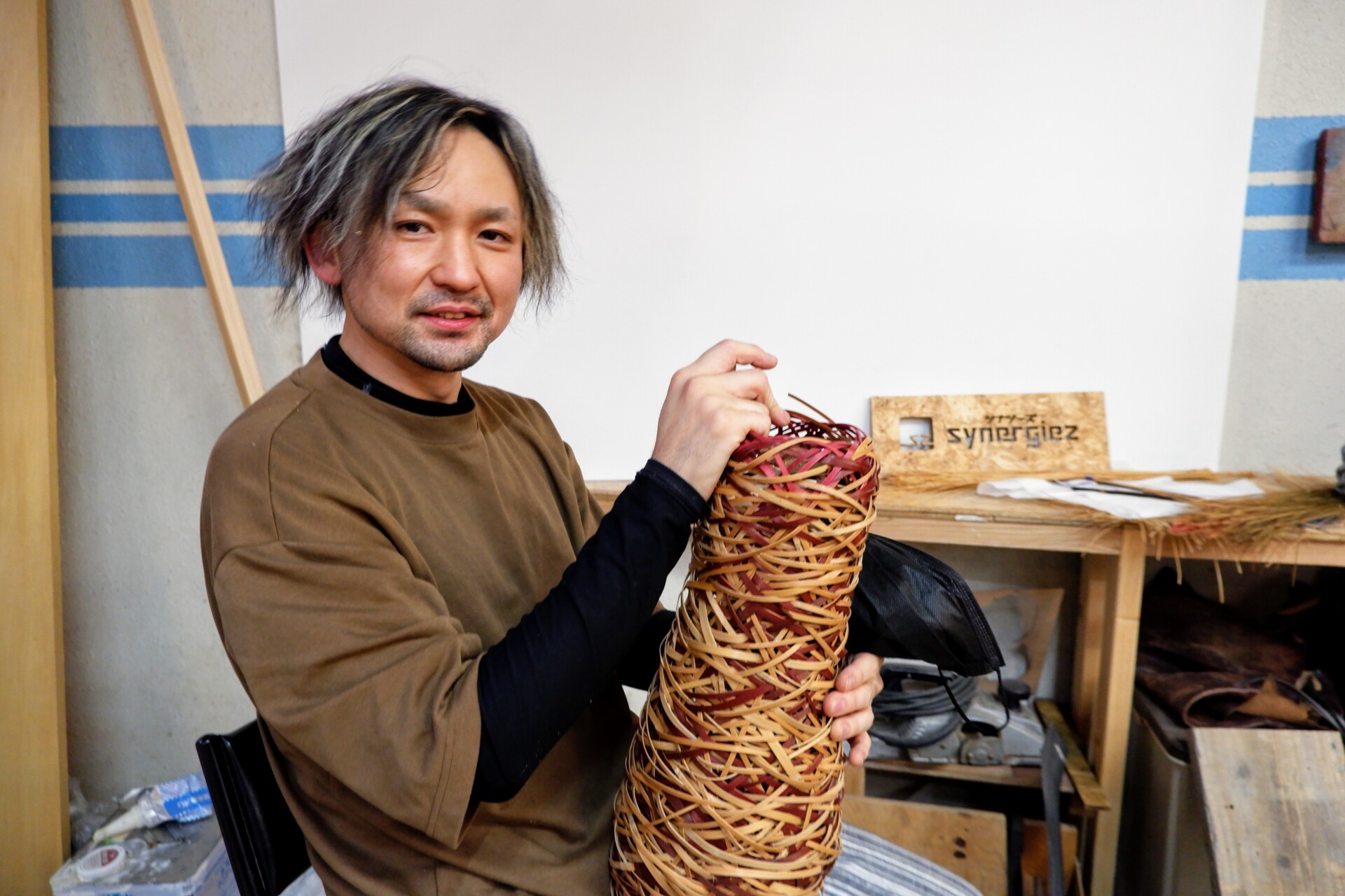 竹工芸訓練センター卒業生で、現在竹藝家(チクゲイカ)として活躍されているこじまちからさんに、センターへ入学した経緯から、竹工芸を生業としている現在の暮らしまでお聞きするべく、ちからさんが経営しているものづくりコワーキングスペース「synergiez」へお邪魔しました。