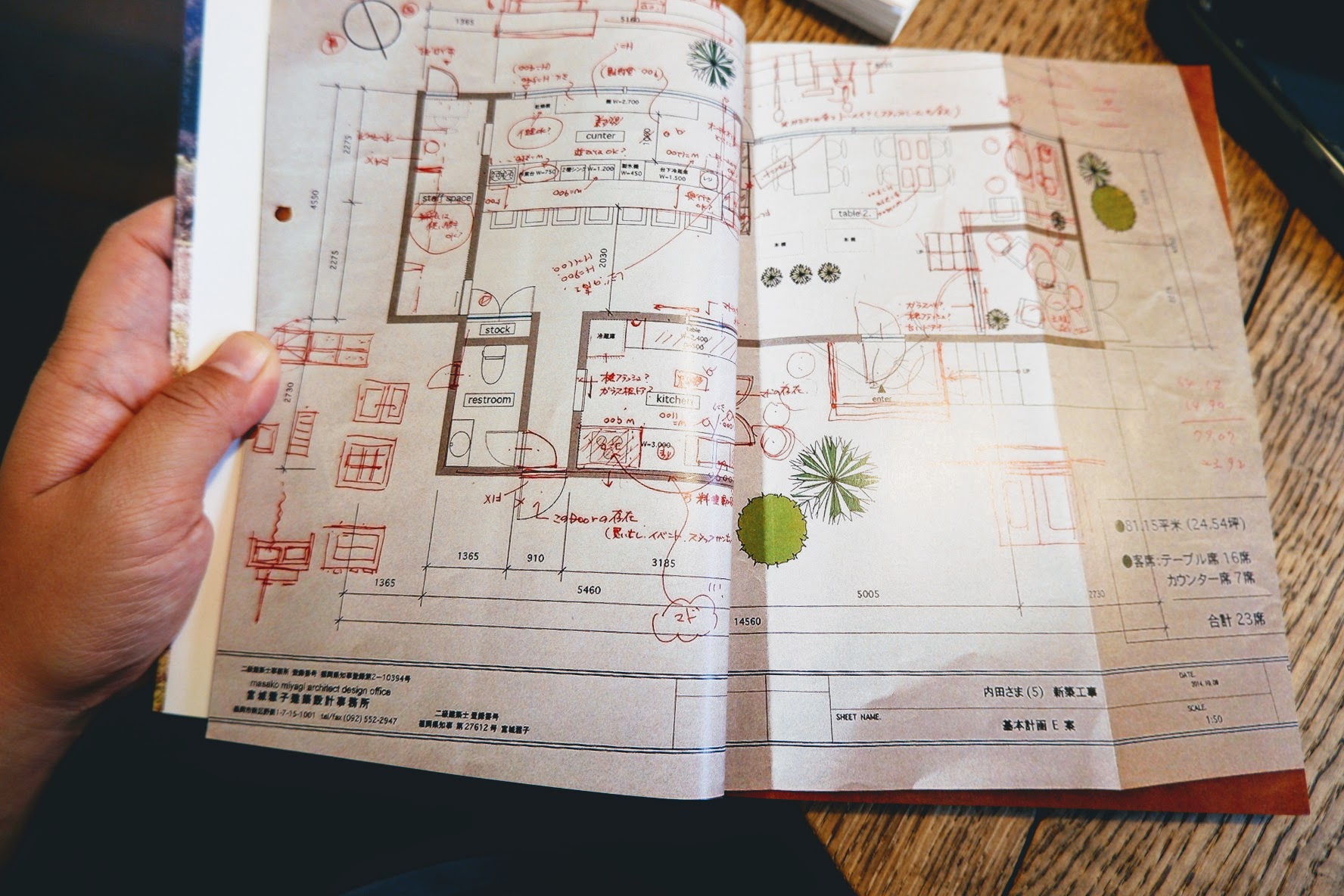 内田さんが構想した図面。スタッフの服の想定などもあった。