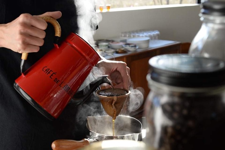 コーヒーはネルドリップ。Cafe de LAMBLEを参考に。
