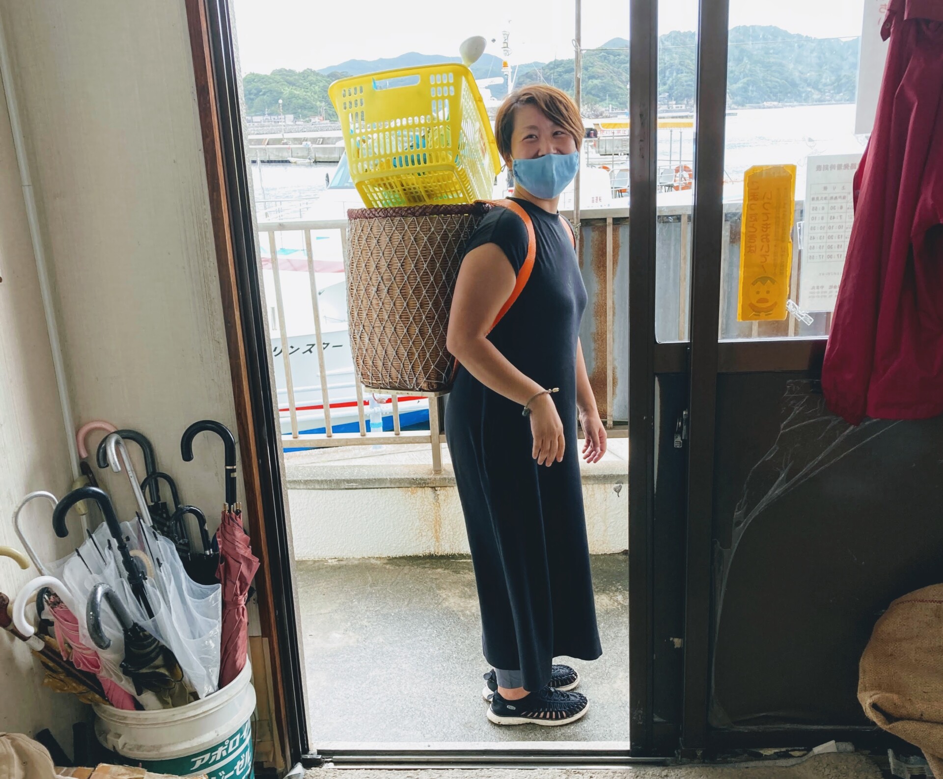 船着場にいるお母さん達がみんな持っていた籠。「背負ってみな!」と体験させてくれた。