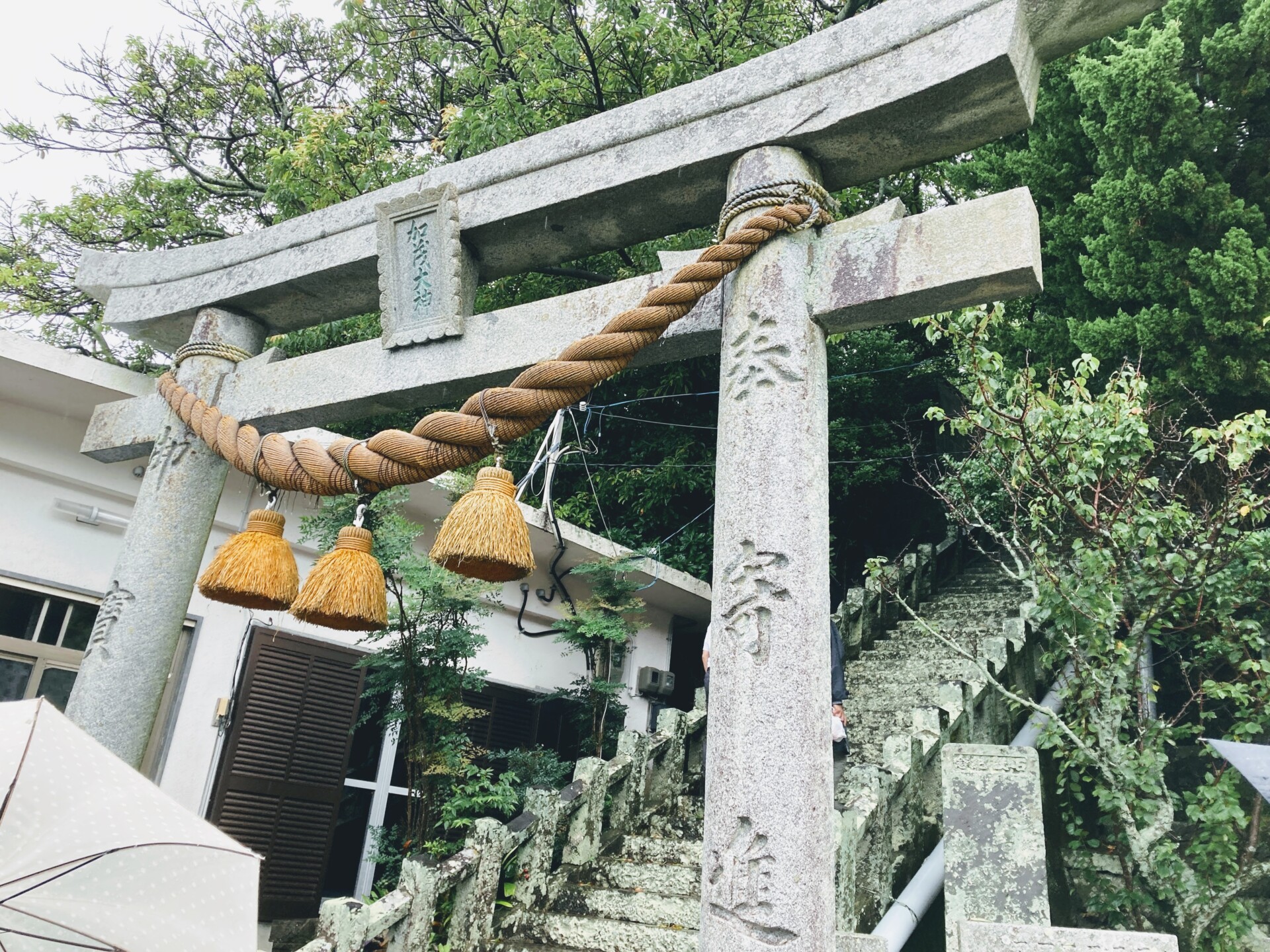 島唯一の神社である「加茂神社」にて色々教えてくれた神崎さん。