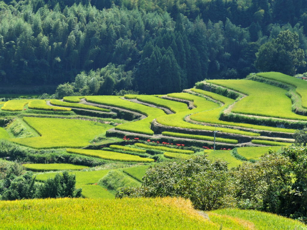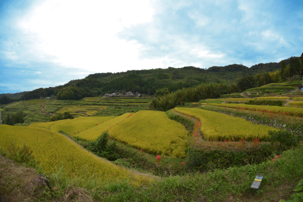 戦国期から江戸期にかけて開かれ、面積は40余ヘクタール、水田およそ千枚で構成されている棚田。平均勾配はほぼ10分の1で、水平距離10メートルで1メートル高くなる傾斜となっています。農林水産省「日本の棚田百選」に5位で選ばれています。