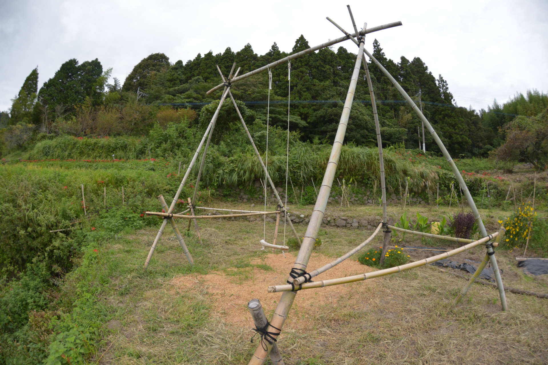 イベントで棚田に作られたブランコ