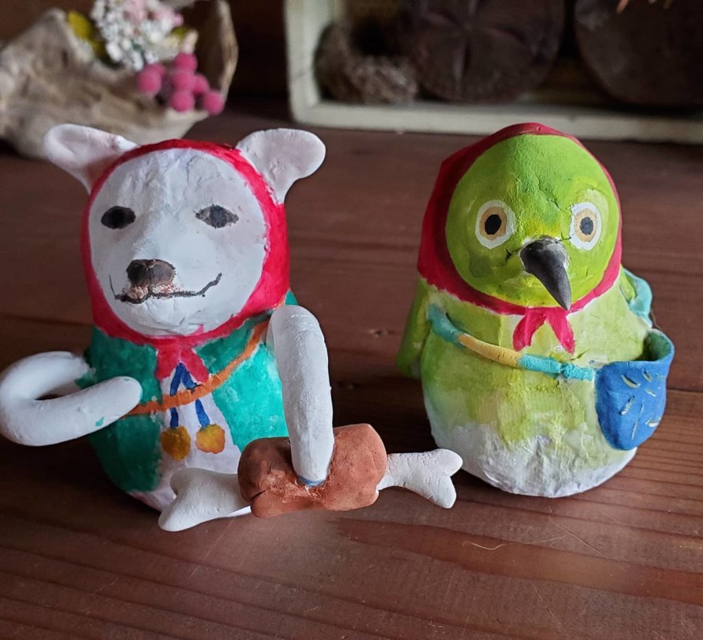 娘さんが制作した張り子人形。オーダーしたら希望の動物をつくってもらえる。