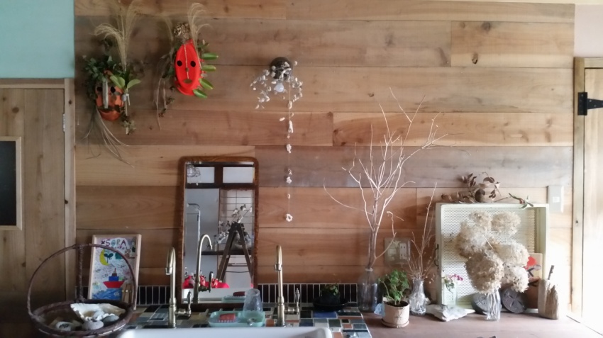 幼いころから芸術系に興味がある娘さんですが、国東の中学校には文化部がありませんでした。そこで、武井さんは図工クラブを主宰しているそうです。数人の生徒さんが参加して、絵を描いたり工作をしたり、時には屋外で立体物をつくったりして活動しています。家屋の中にも図工コーナーがありました。