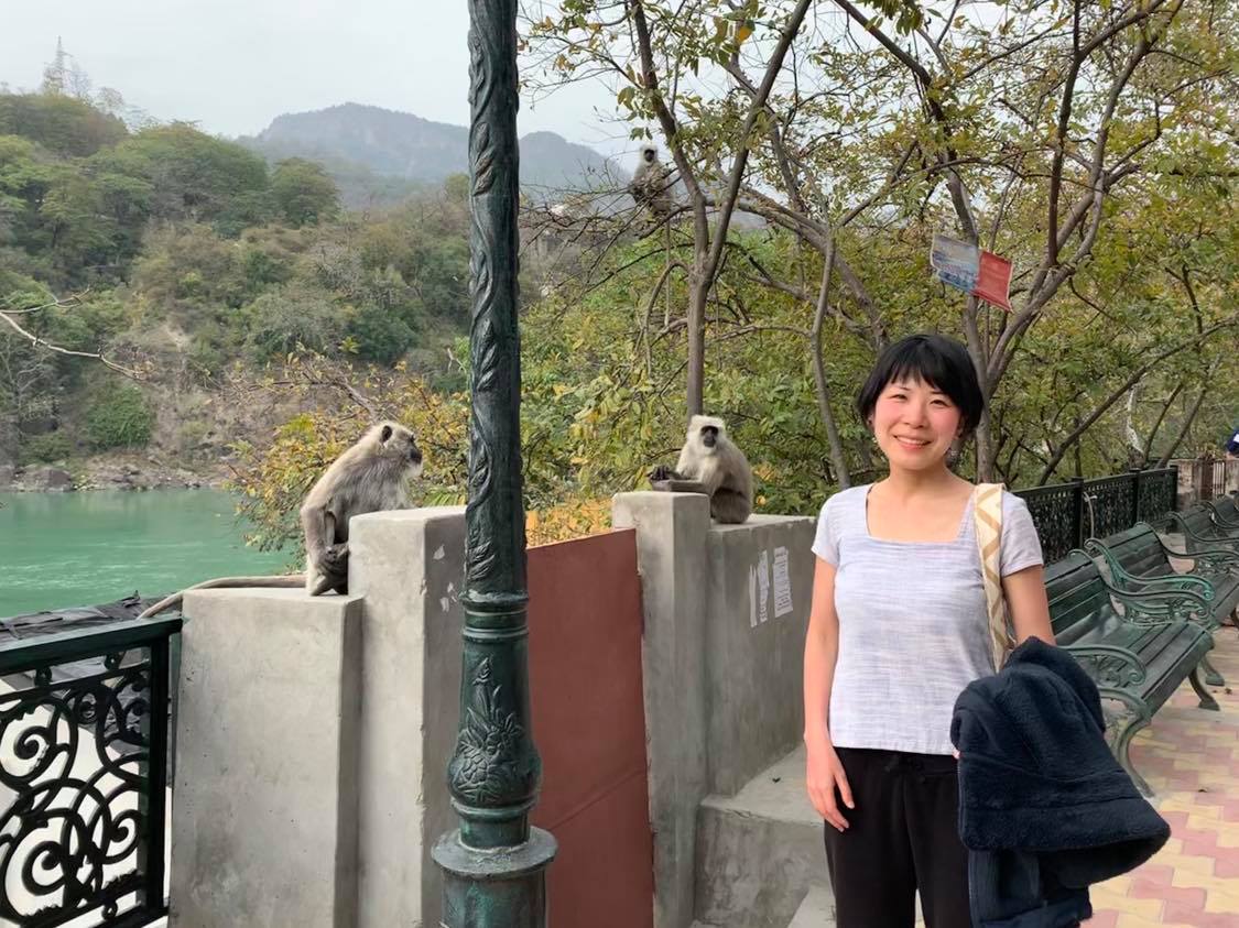 インドのリシケシにて。ガンジス川のほとりで、猿と。