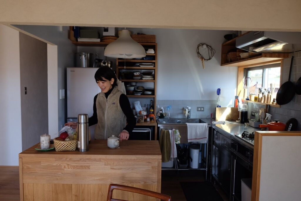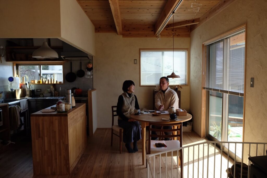 現在は別府市の隣の日出町に住まいを移し、昨年新居が完成したという室橋さん家族。日当たりのいい家全体に木のぬくもりが感じられ、リビングの中心にはあたたかな火が灯る薪ストーブが置かれていました。