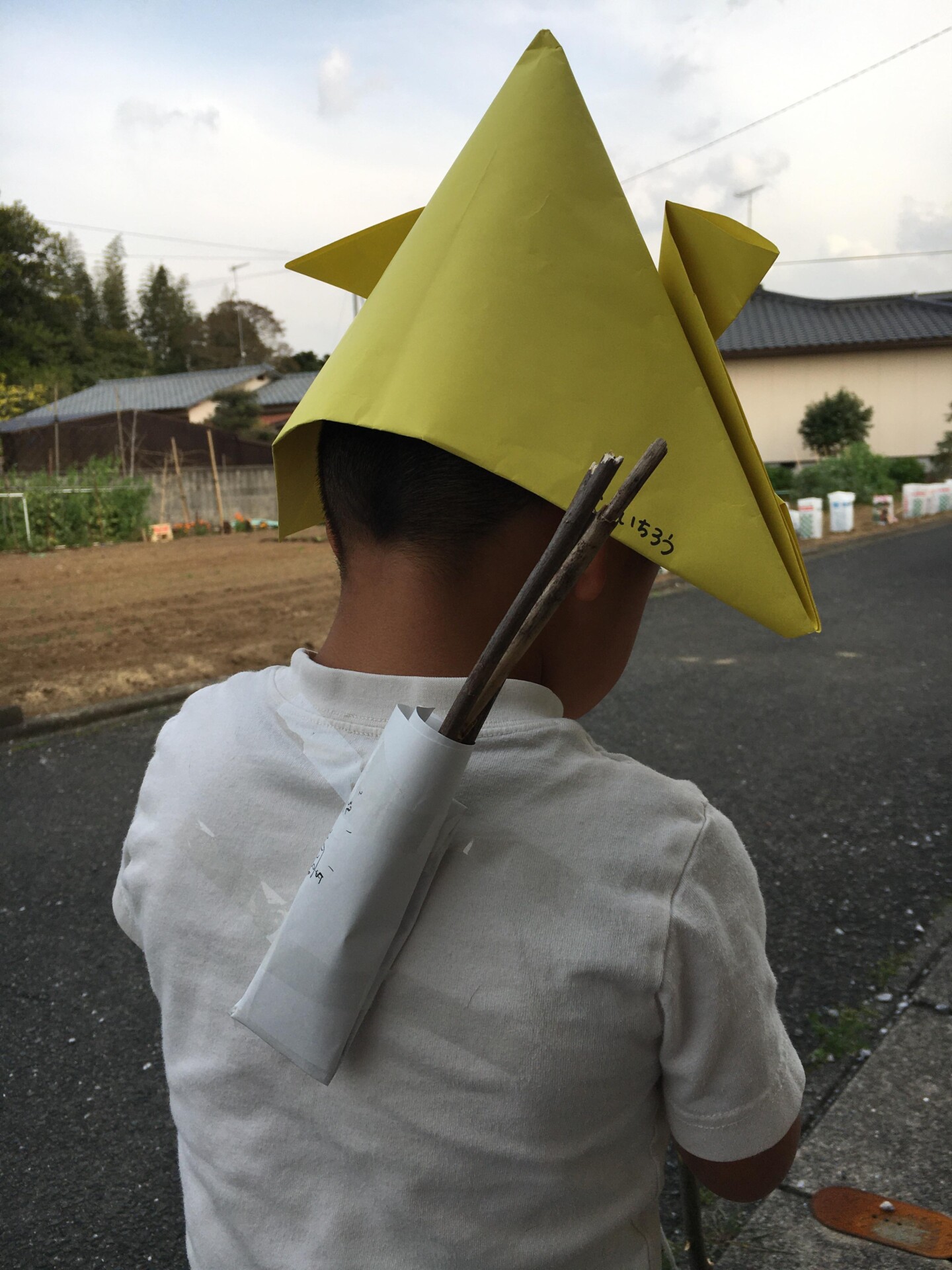 手作りカブトと弓矢