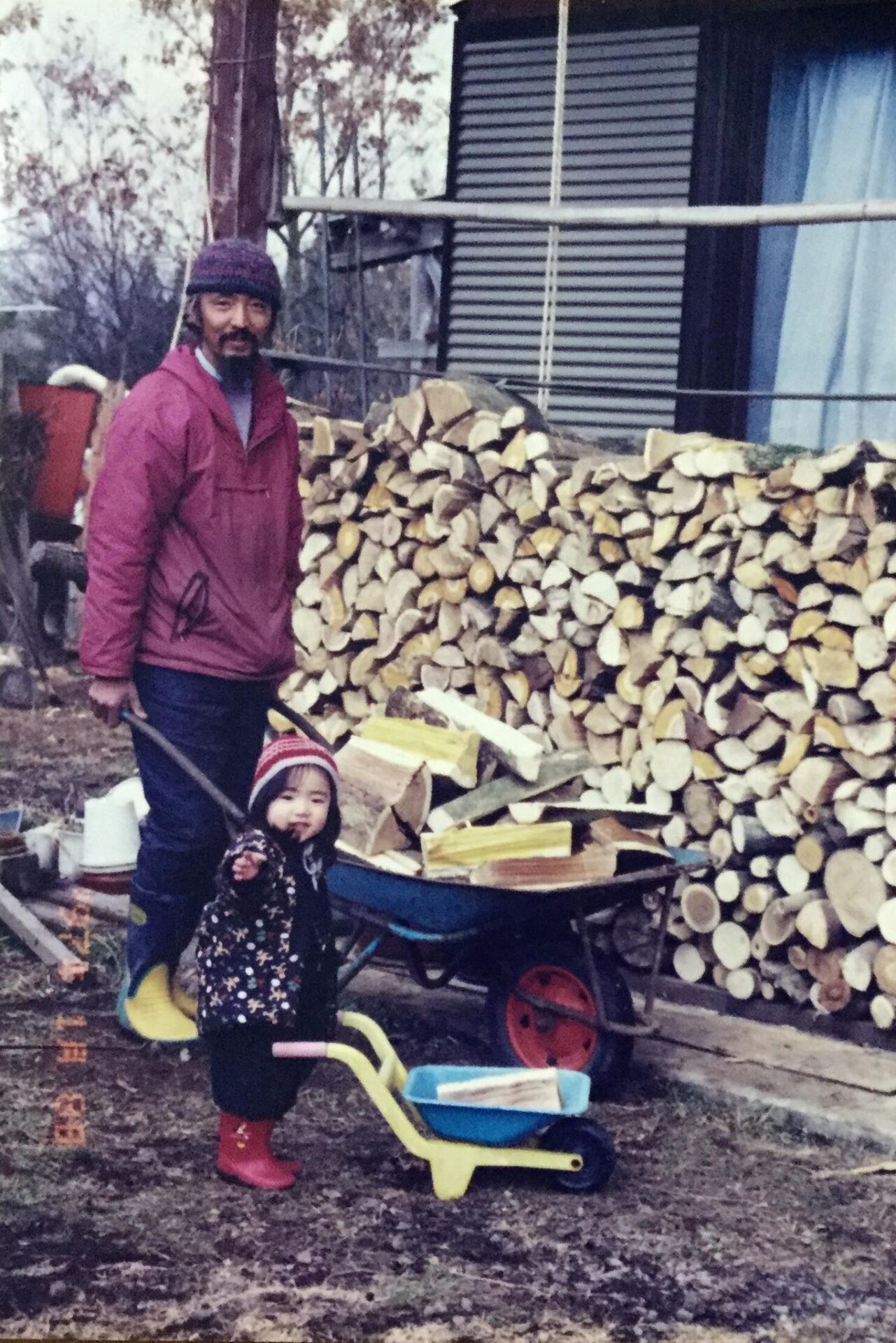 薪ストーブのある生活 お父さんのお手伝いをする娘さん