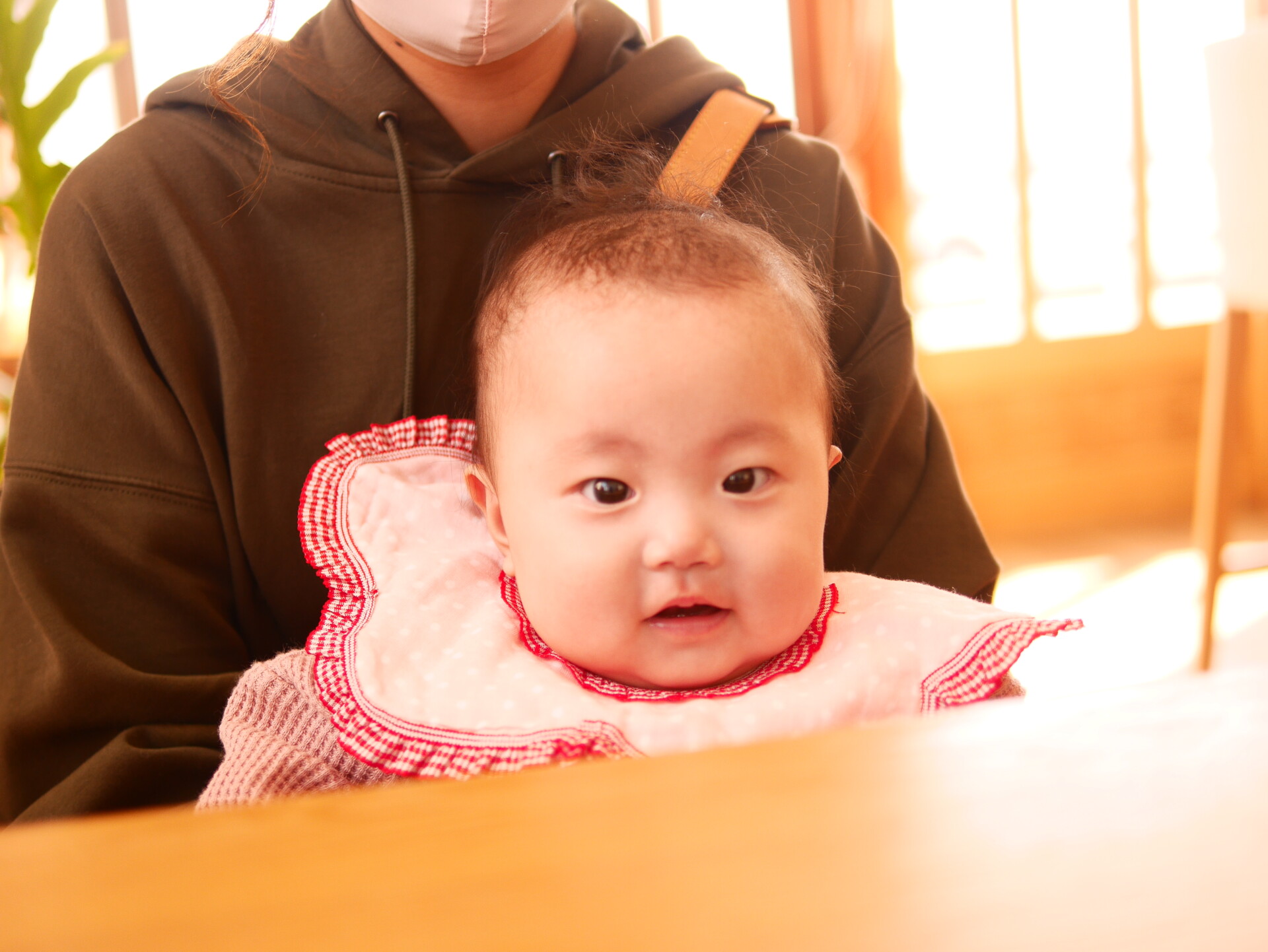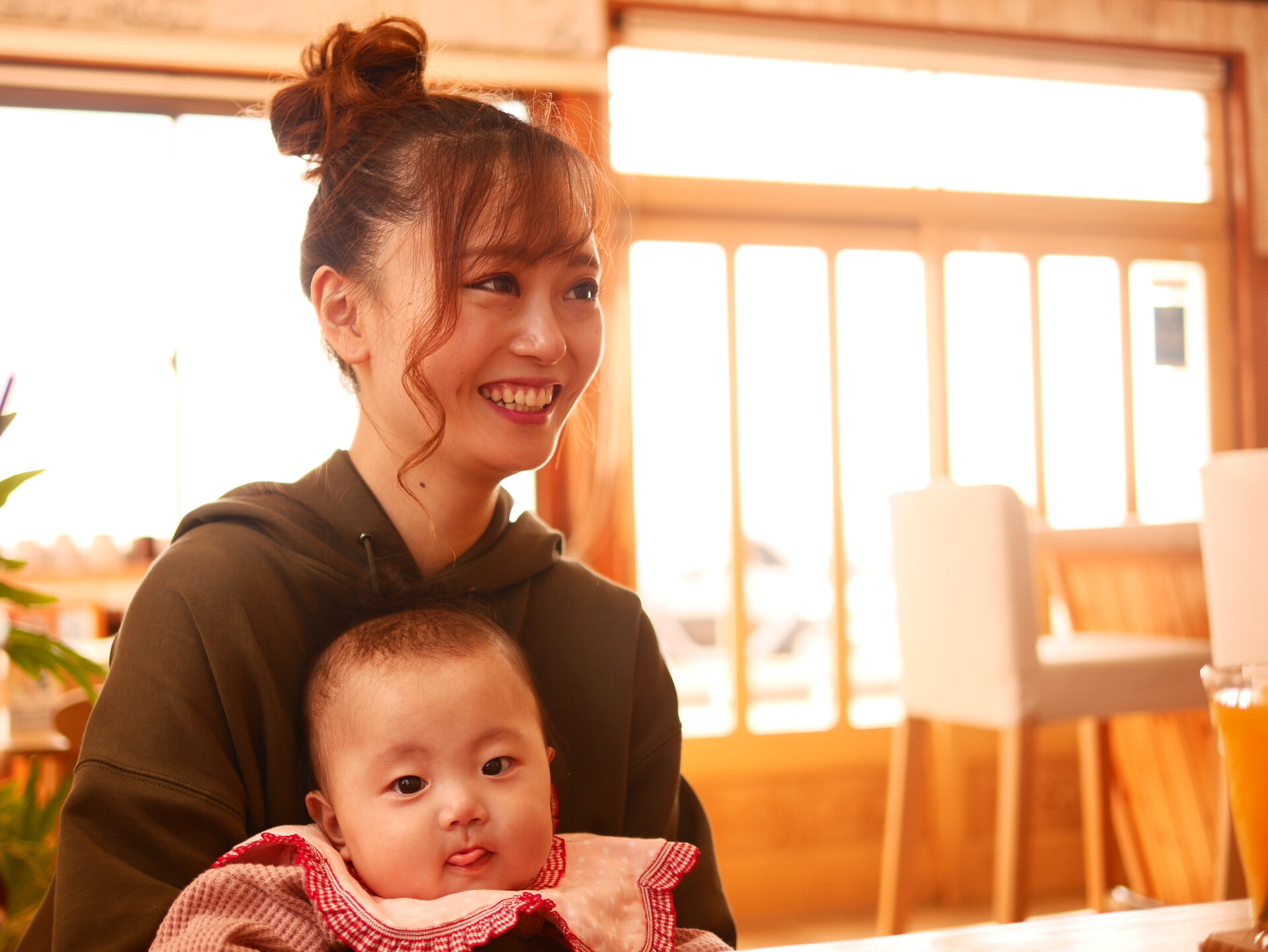いかにも最近の若者というオーラを纏った可愛い女性が、これまた愛らしい子どもを抱いて登場してくれました。
