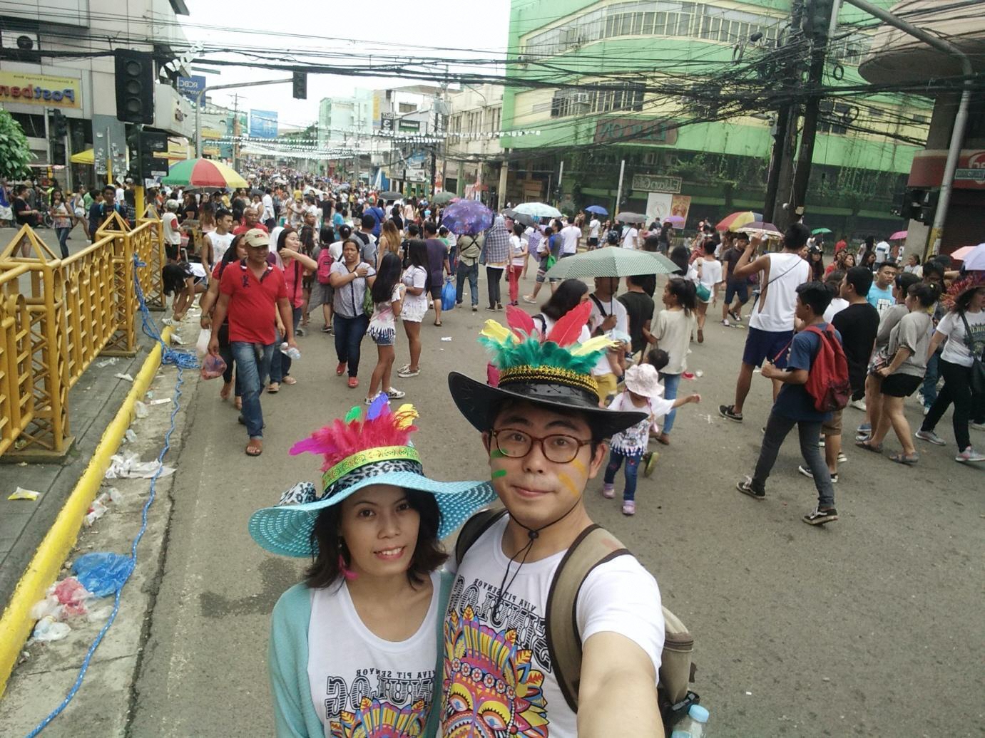 フィリピンでのシヌログ祭りに参加する前原さん夫妻