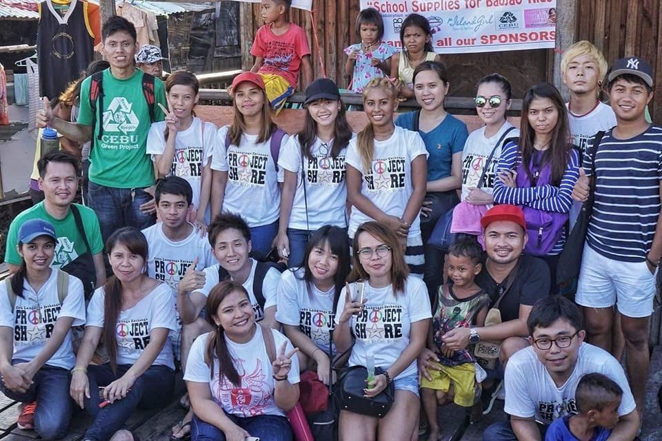 バジャウ族のコミュニティで食品や勉強道具を子供達に配布したProject Shareのイベントでの集合写真
