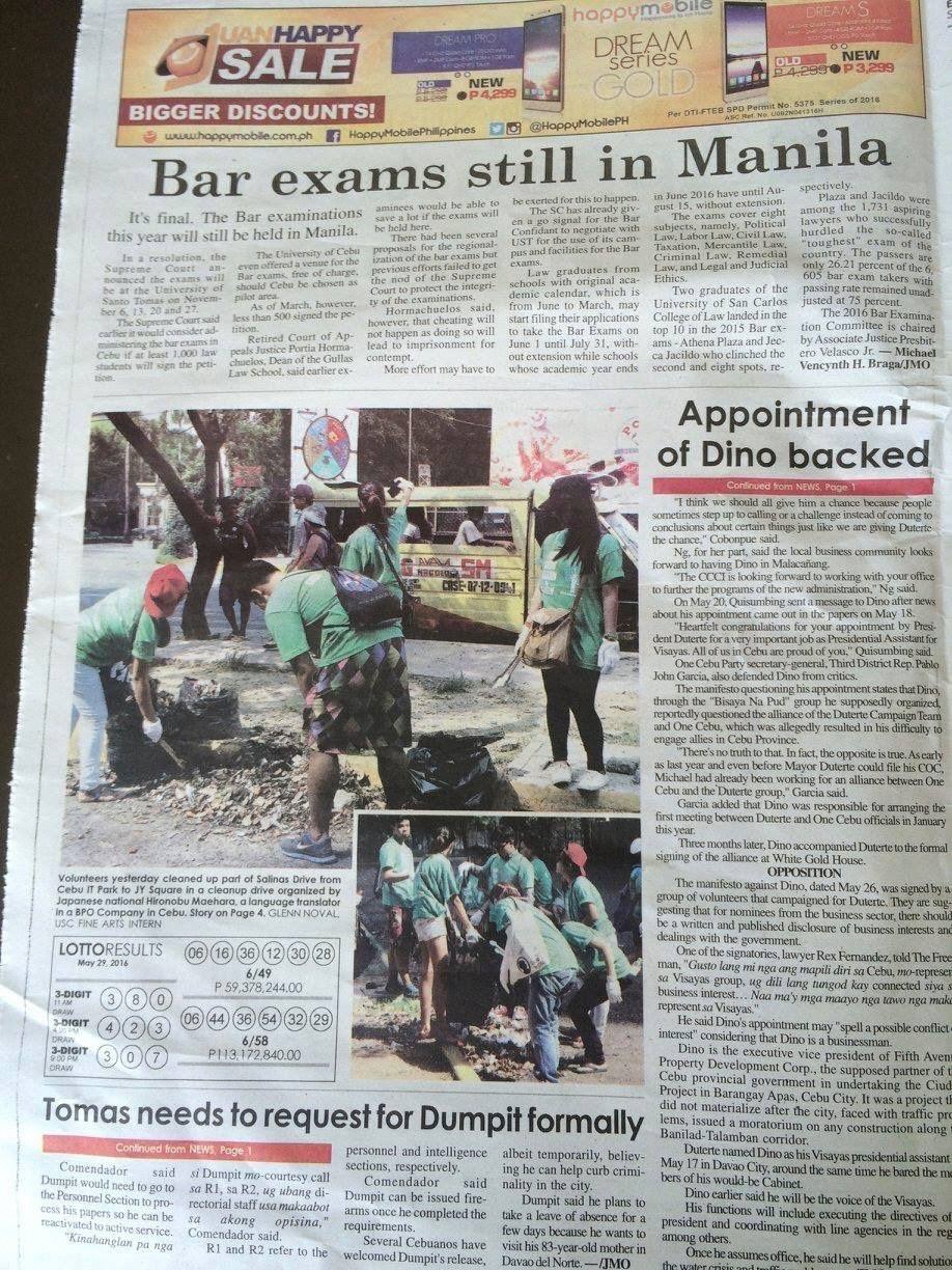 ゴミ拾いプロジェクト(Cebu Green Project)が掲載された現地新聞