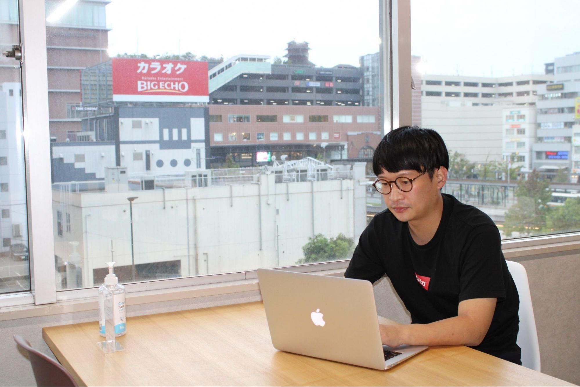 大分駅の目の前にあるコワーキングスペース「Oita Co.Lab Lounge」で仕事中