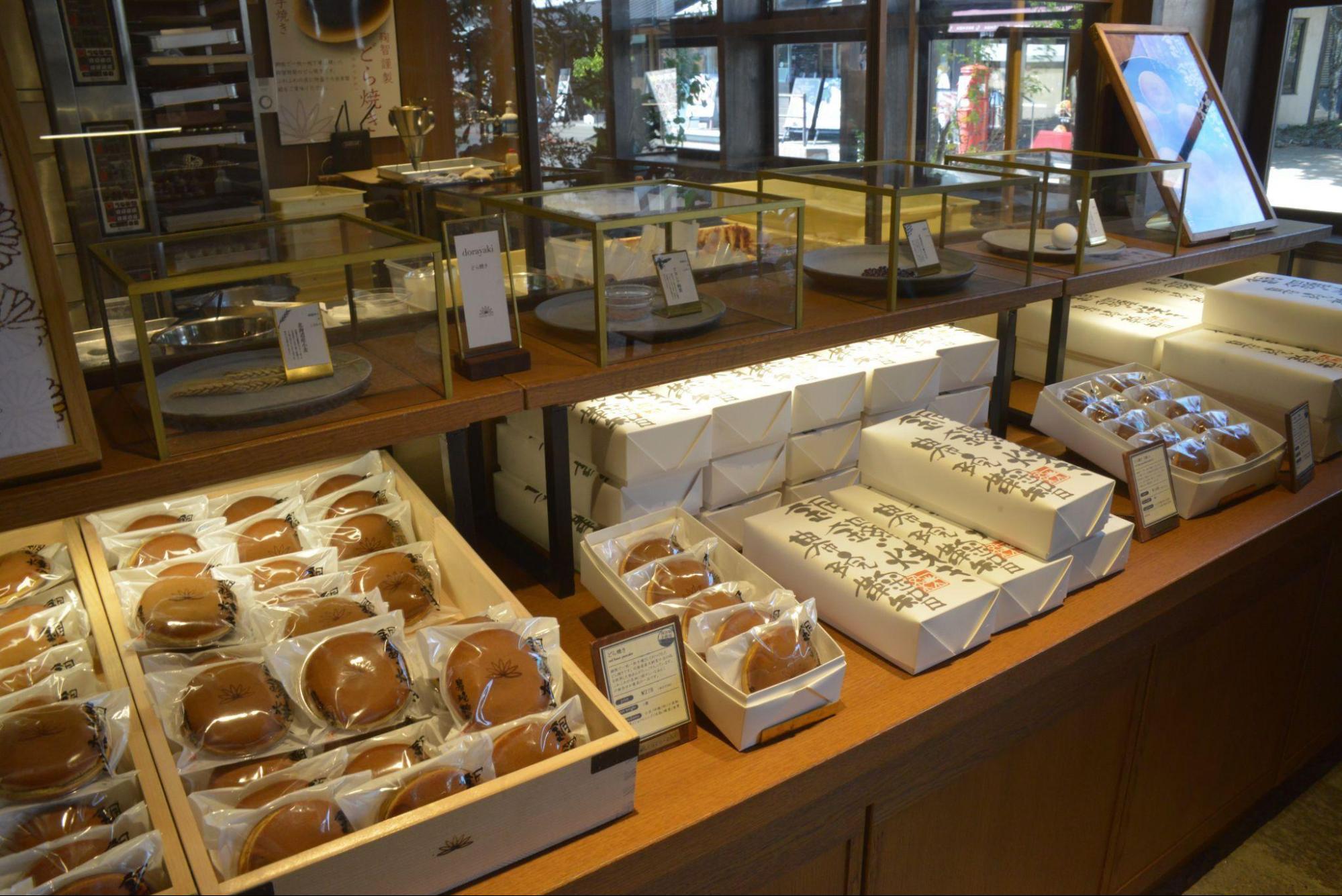 どら焼きはふわふわの厚い皮が特徴的で、中に挟まれる甘さ控えめの餡がよく合います。季節に応じて作られる新商品は、通う度に新しい味わいを届けてくれます。また鞠智は商品だけでなく、店の外観にも特徴があります。