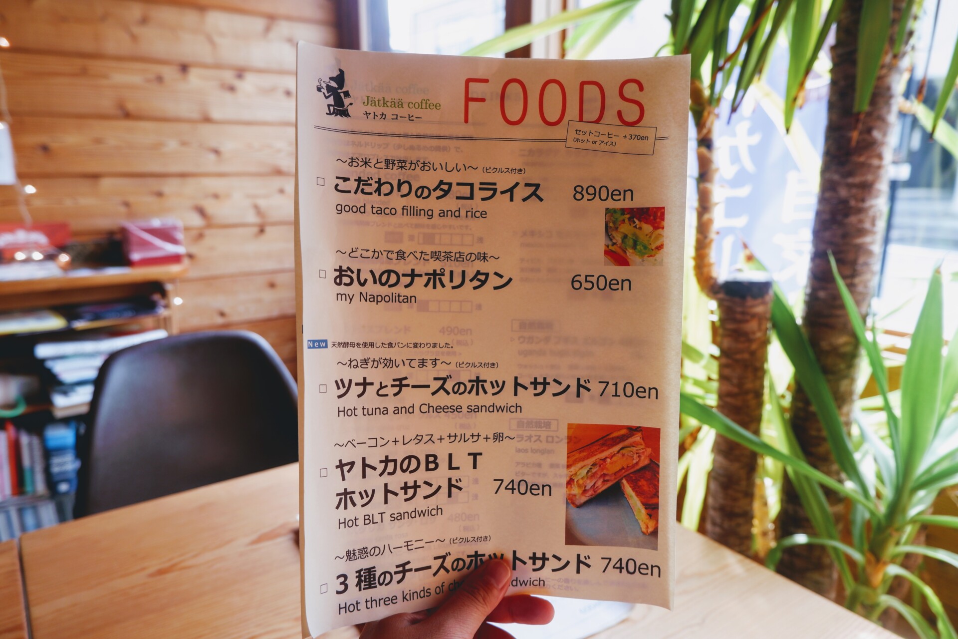 特に宣伝もせず、穏やかに始めたというヤトカコーヒー。「ヤトカ」はフィンランド語で「続ける」という意味。ロゴの由来は目の前に見える伐株山にきこりが腰掛けている姿をイメージして作ったのだとか。そんなヤトカコーヒーにはこだわりのコーヒーはもちろん、多彩な食事メニューがあります。