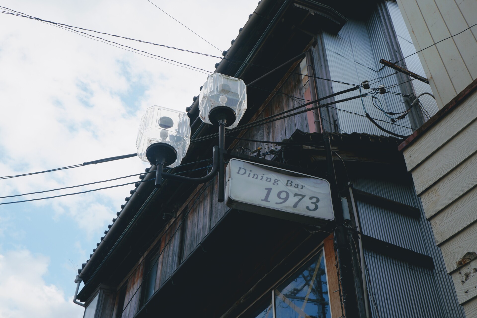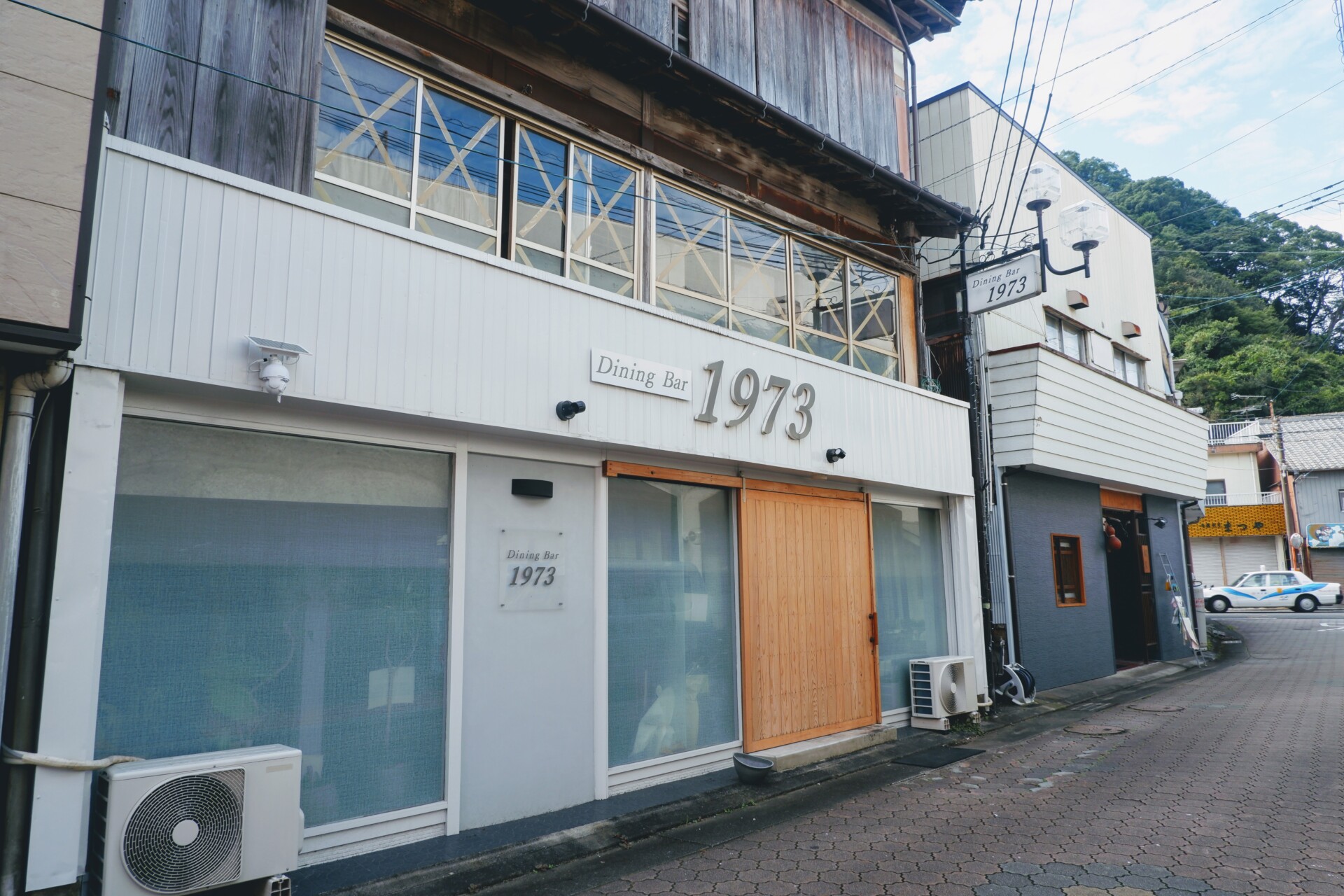 Dining bar 1973は商店街の外れにある。一際おしゃれな大きな扉が印象的。