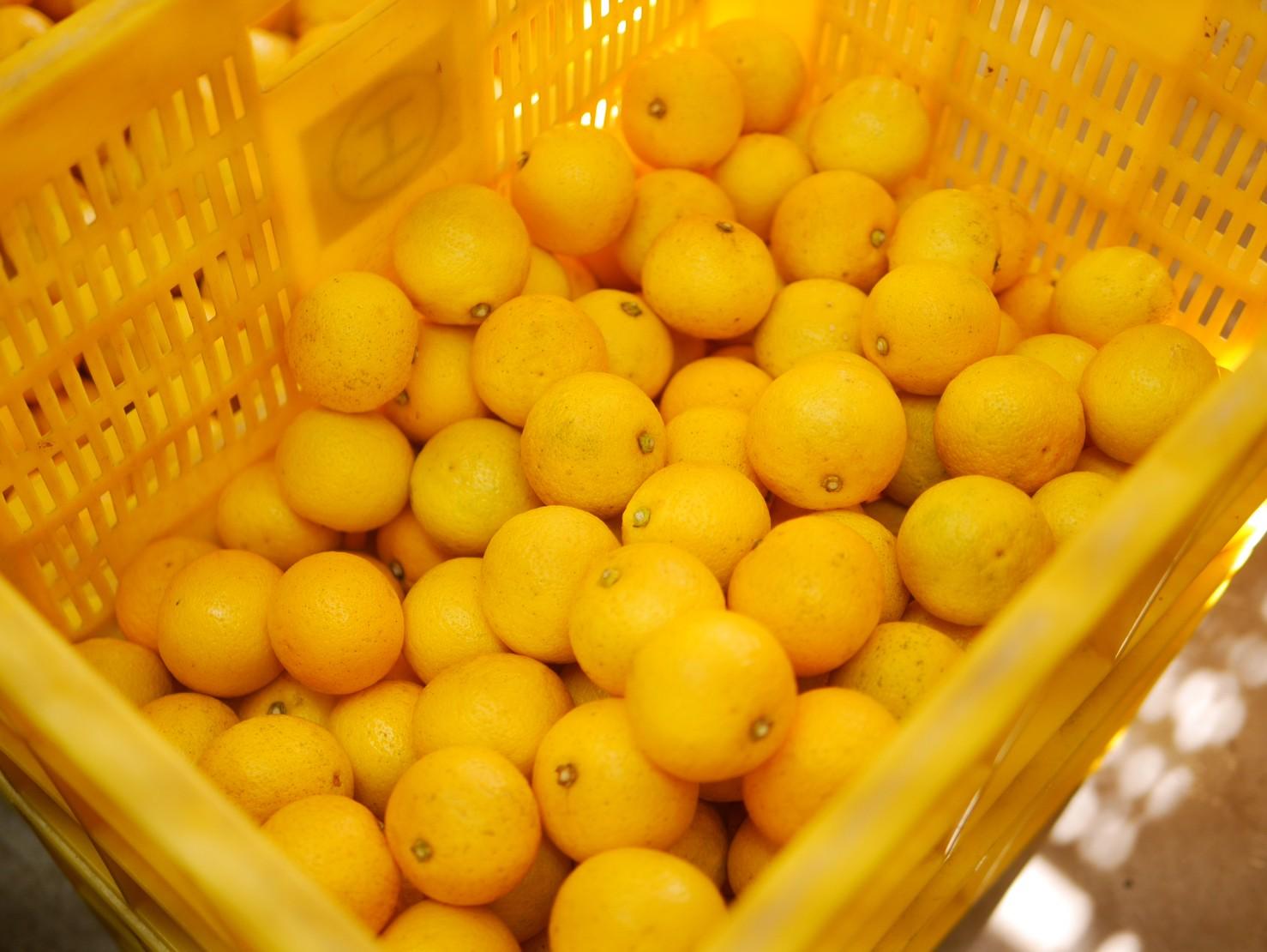 大分有機かぼす農園のかぼす。黄色く色づいたかぼすは果汁が多くカボス果汁に加工される