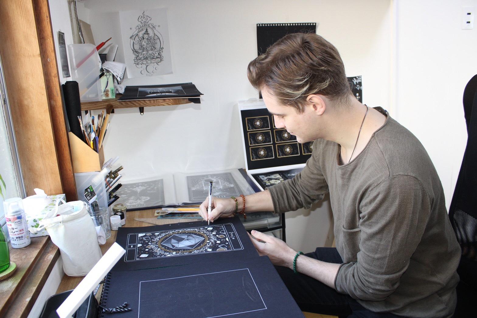 また臼杵市に来てから仏画を描く(フランソワさんのアート作品)ことも増えたそうで、臼杵市の文化から得たインスピレーションが、アーティストであるフランソワさんの創作意欲に大いに刺激を与えているようです。