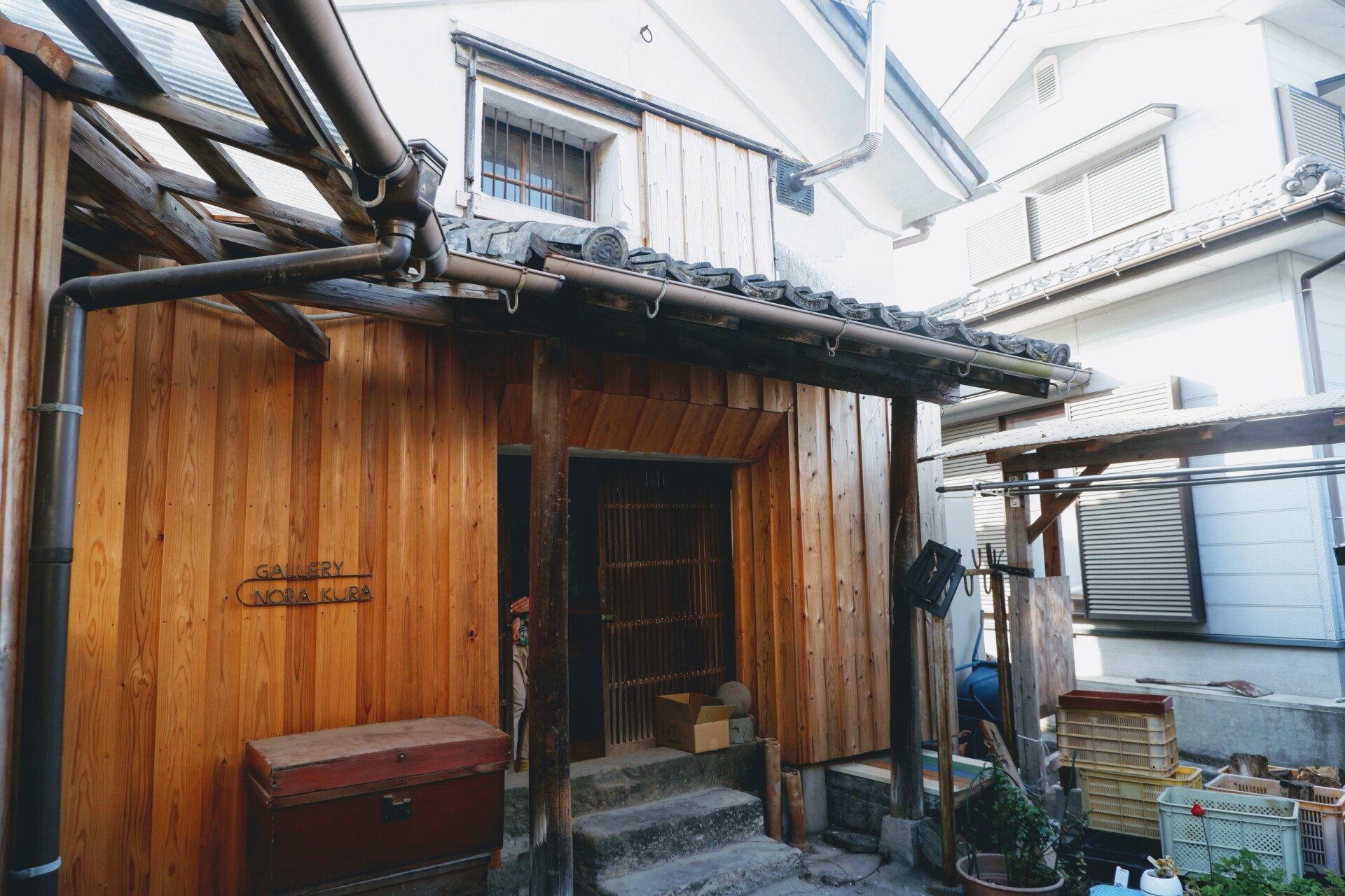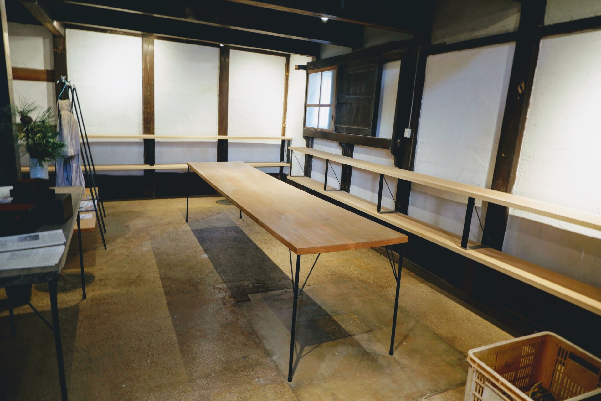 蔵も改修したゆきのぶさん。2階建てで元々雰囲気が良い蔵から荷物を出し、今後ギャラリーとして使っていけるように棚を設置したりドアを直したりしています。