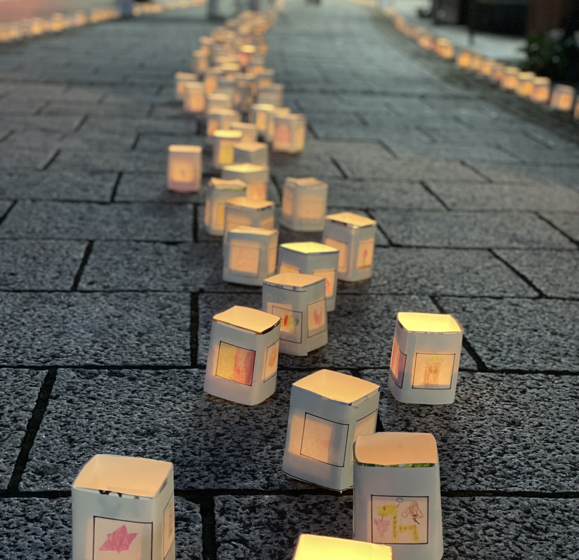 府内五番街商店街振興組合と大分芸術短期大学との合同イベントで、幼稚園の子供達が作った灯籠