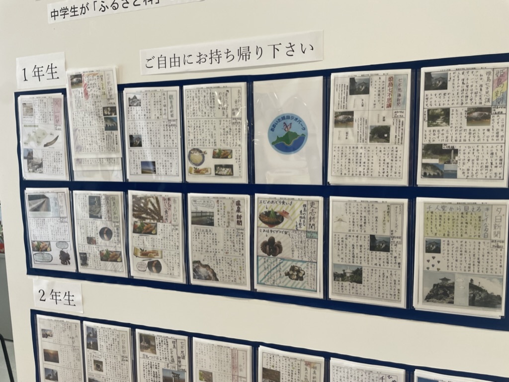 地元の中学生がジオパークについて学んだことをまとめた「ハガキ新聞」