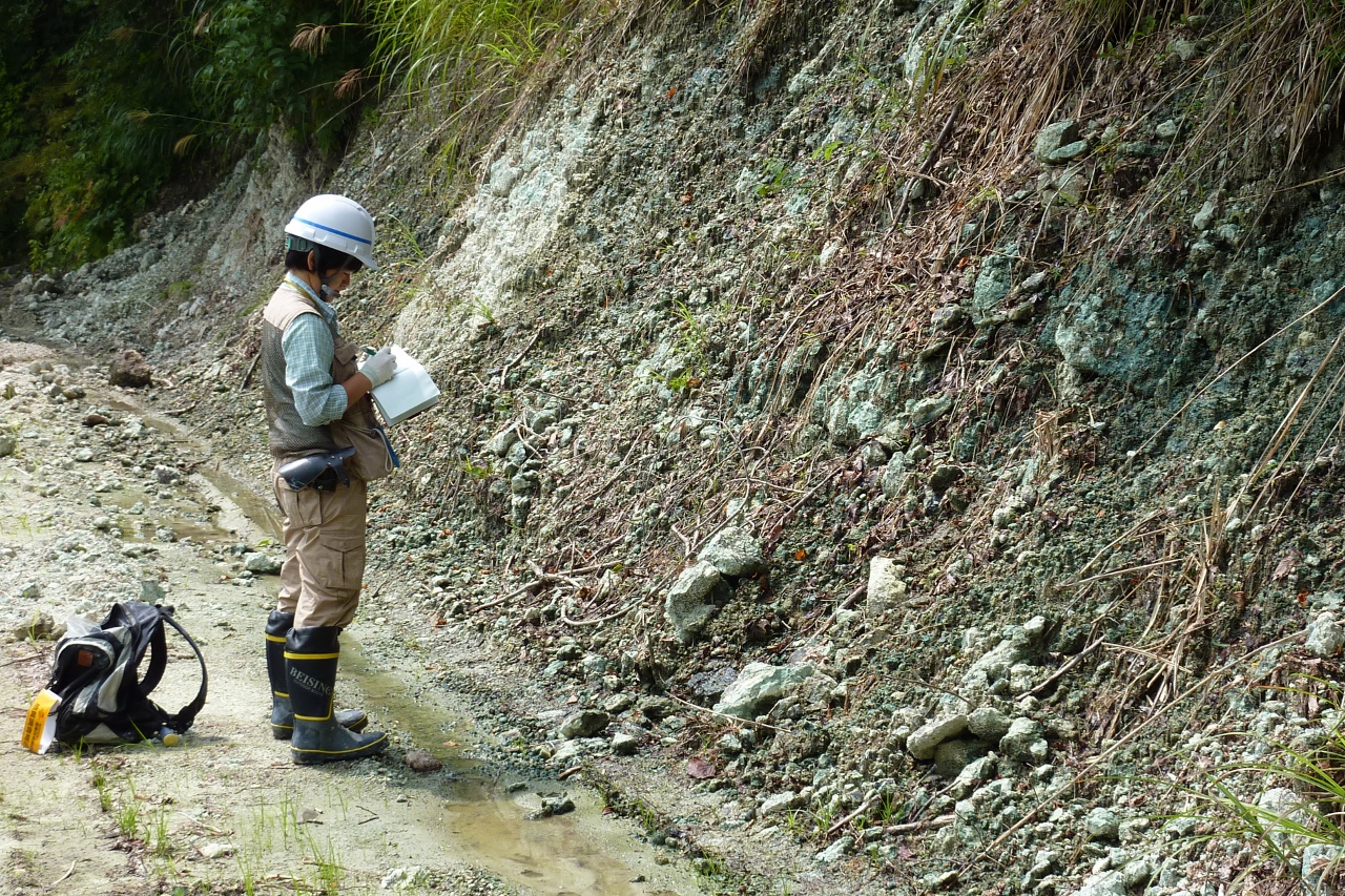フィールドワークできるというのが地学の魅力でもあると語ります。基本は地質図を作るために山を歩いて、見つけた石を調べて回るそうです。