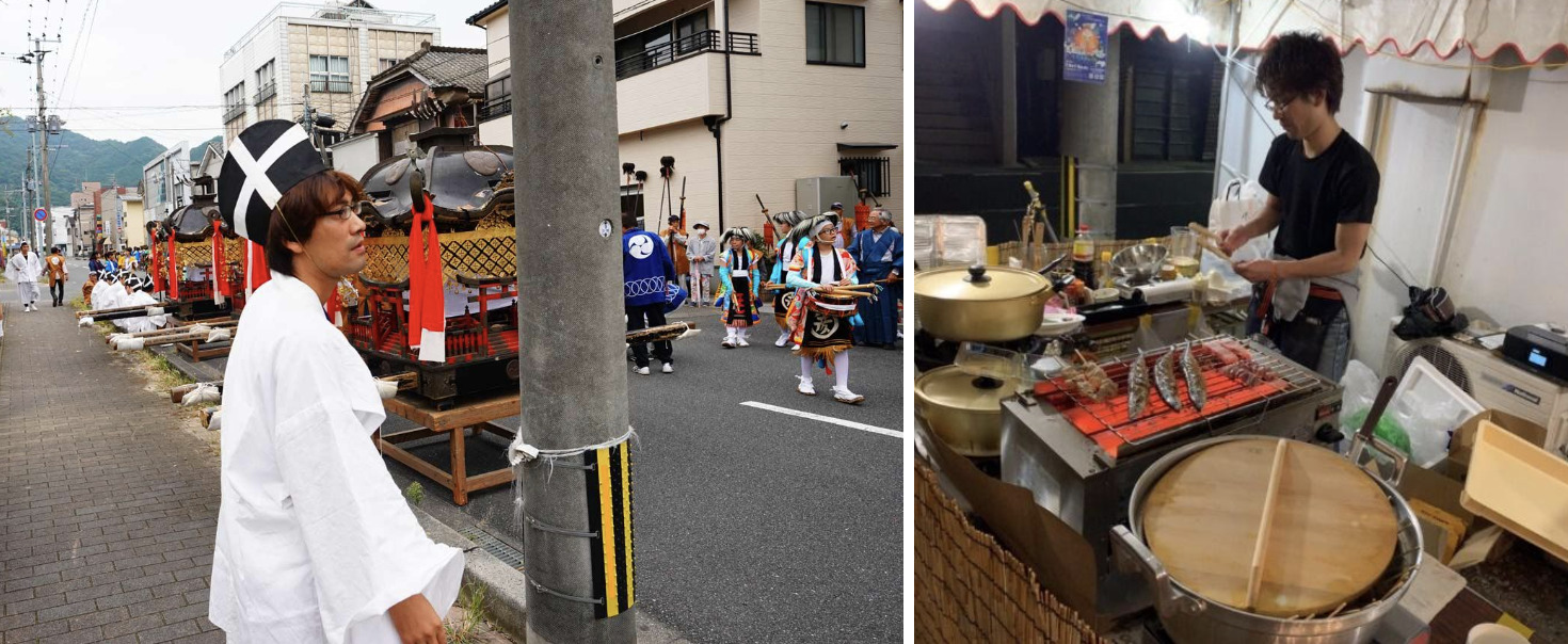 地域の神事に参加。また、イベントを企画し屋外にて屋台営業を実施