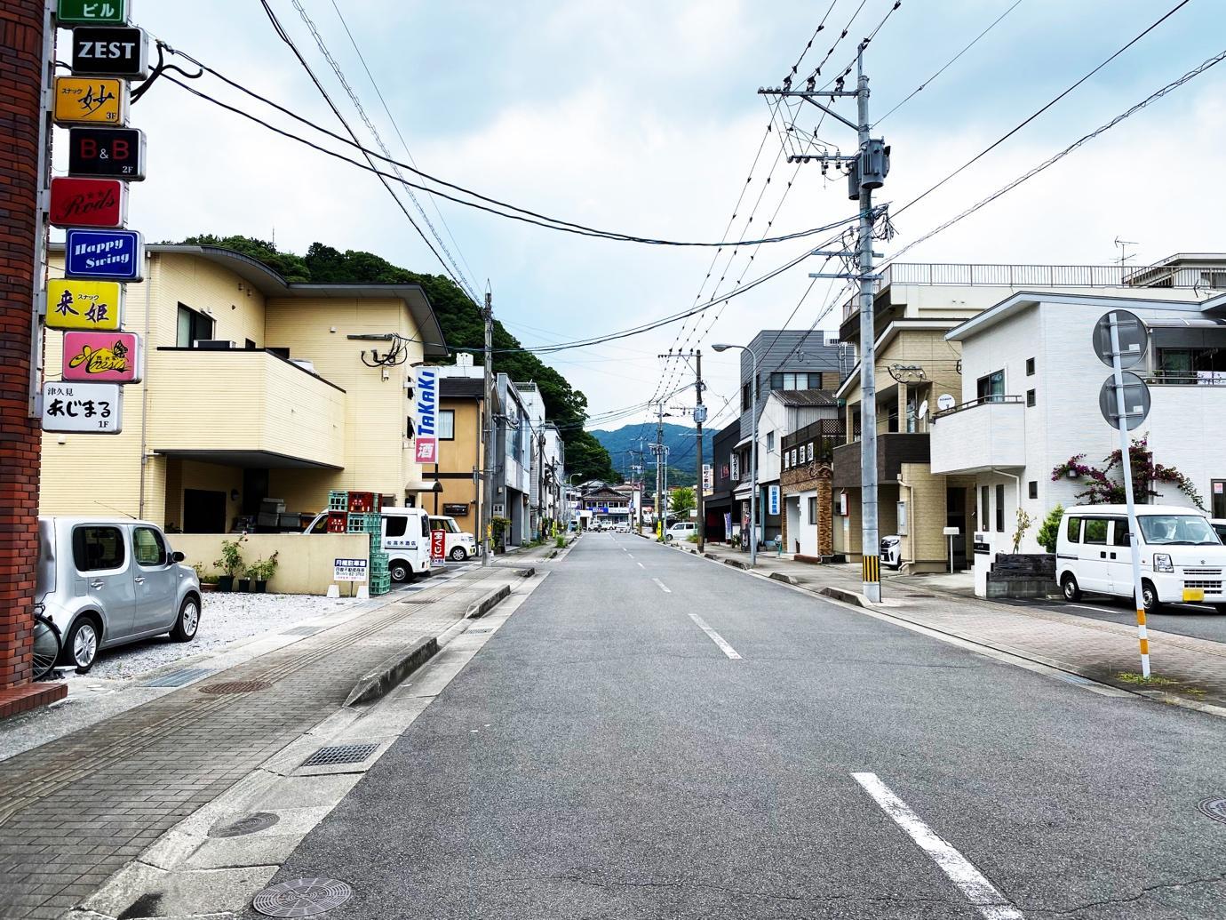 津久見市出身のシンガーソングライター 伊勢 正三さんの曲のモチーフとなった「海岸通」の街並み