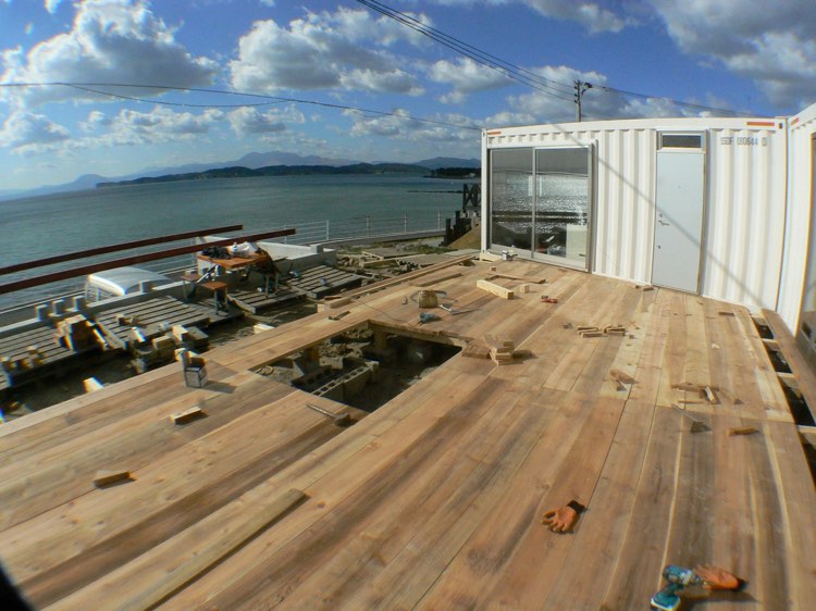 高志:夏はテントだけで大丈夫だったのですが、冬は寒いので中古のコンテナを買って、中にテントを張り、そこを拠点に生活を始めました。近所に友人ができ、田舎暮しのイロハを教えてくれる師匠ができました。そのうち東京の知り合いの設計士でコンテナハウスを作ろうとしている方が、練習を兼ねて製造してくれることになりました。師匠や友人にも手伝ってもらいながら整地や設置、雨水システムや配線などもして、翌年には住めるようになり、2010年より本格的に大分県へ移住しました。