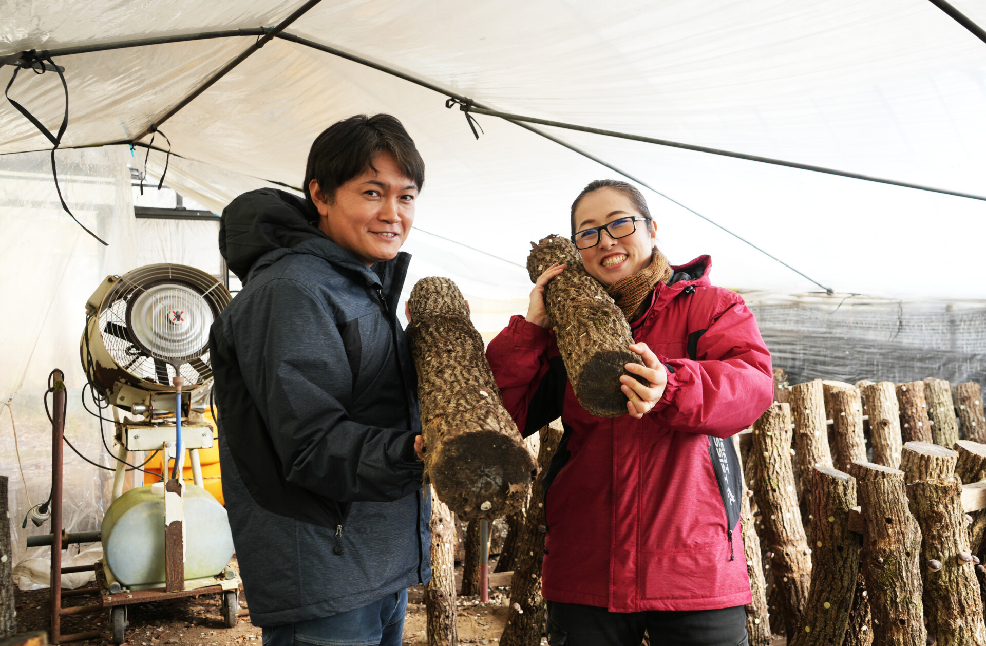 吉伸さん : 椎茸の仕事は私達に合っていますし、初めてのことばかりで興味が尽きることなく楽しいです。もちろん、山作業など大変なこともありますが、自然の中で仕事ができるので充実しています。また、椎茸の生育に適している気温が人間と同じこともあり、ビニールハウスの中はまさに快適です(笑)。