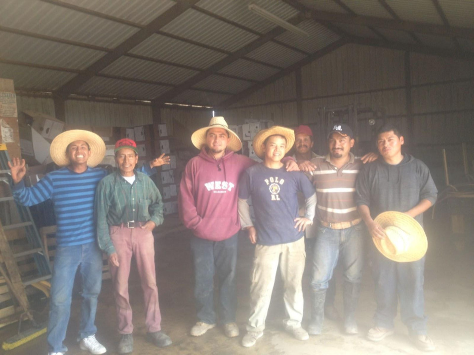 松原さん:僕が配属された農園は、日本人が経営する大葉と大根が主の農家で、日本野菜の部門担当として赴任しました。英語の勉強を兼ねて向かったのですが、まさかのメキシコ人コミュニティで、英語は話さずにスペイン語ばかりでした(笑)。車がなかったので、最初の頃は農場から出ることが出来ませんでしたが、職場のメキシコ人や近隣の農園にいる同じ研修仲間と交流ができるようになり、後半は様々な場所へ行けるようになりました。他の研修生は普通にホームステイやアパート、一軒家だったようですが、僕の場合は狭いトレーラーハウスに1人暮らしだったり、洗濯板で洗濯を行うなど、6時から横一斉にメキシコ人と並んで大根を抜きまくったり日本では経験できないハードな体験することになり、おかげでかなり精神面で強くなれました。