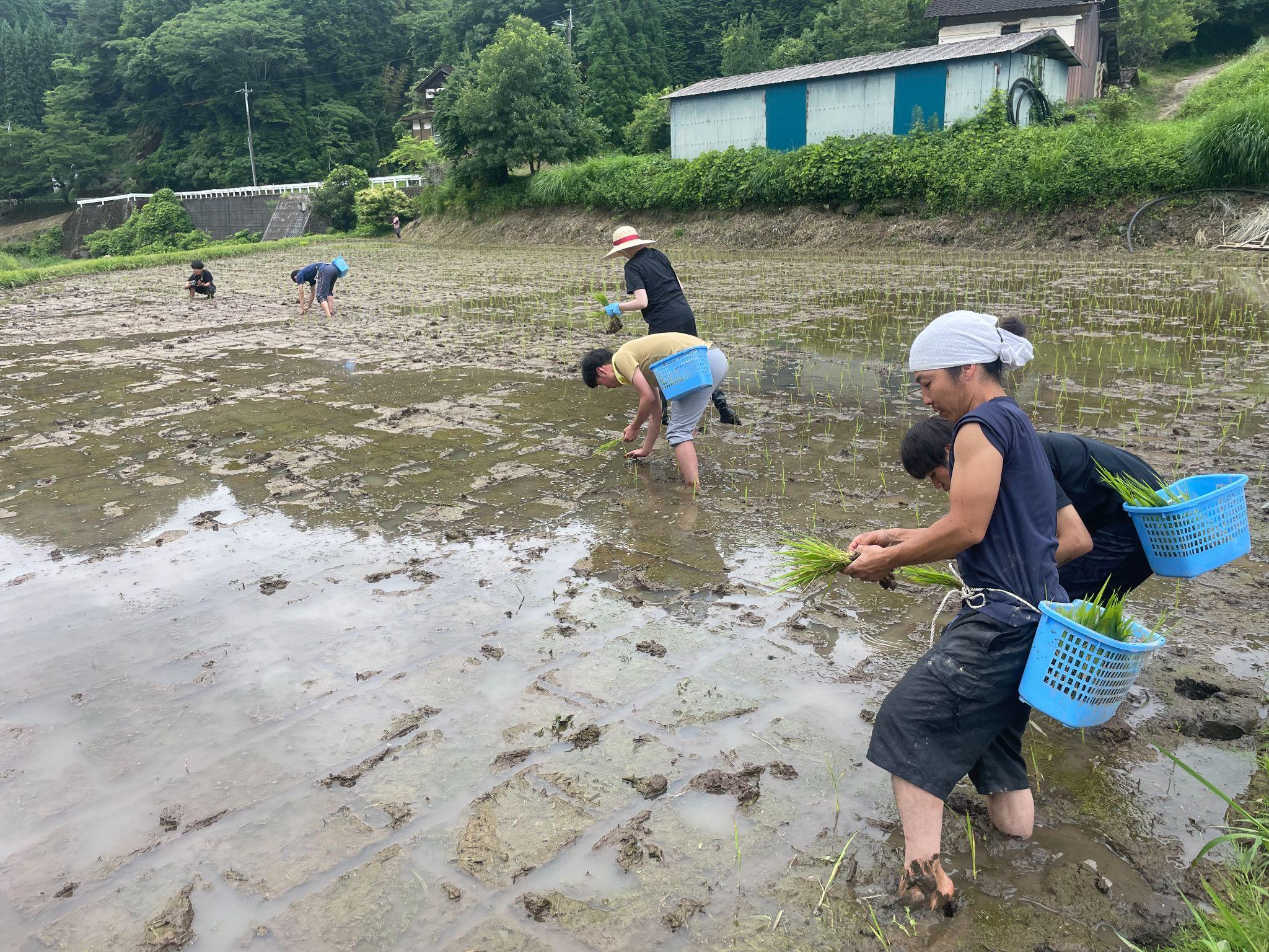 IKIの田んぼで田植えをする様子