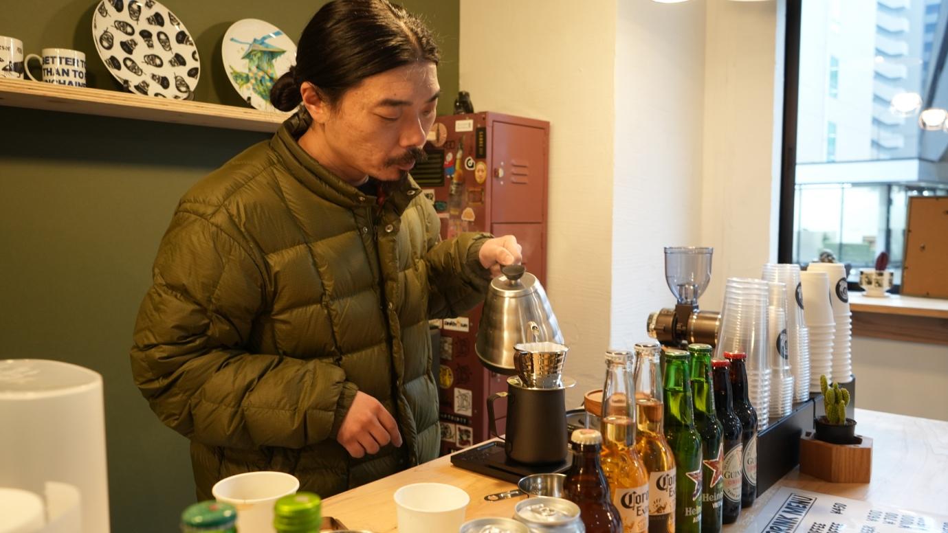 慣れた手つきでコーヒーを淹れる上野さん
