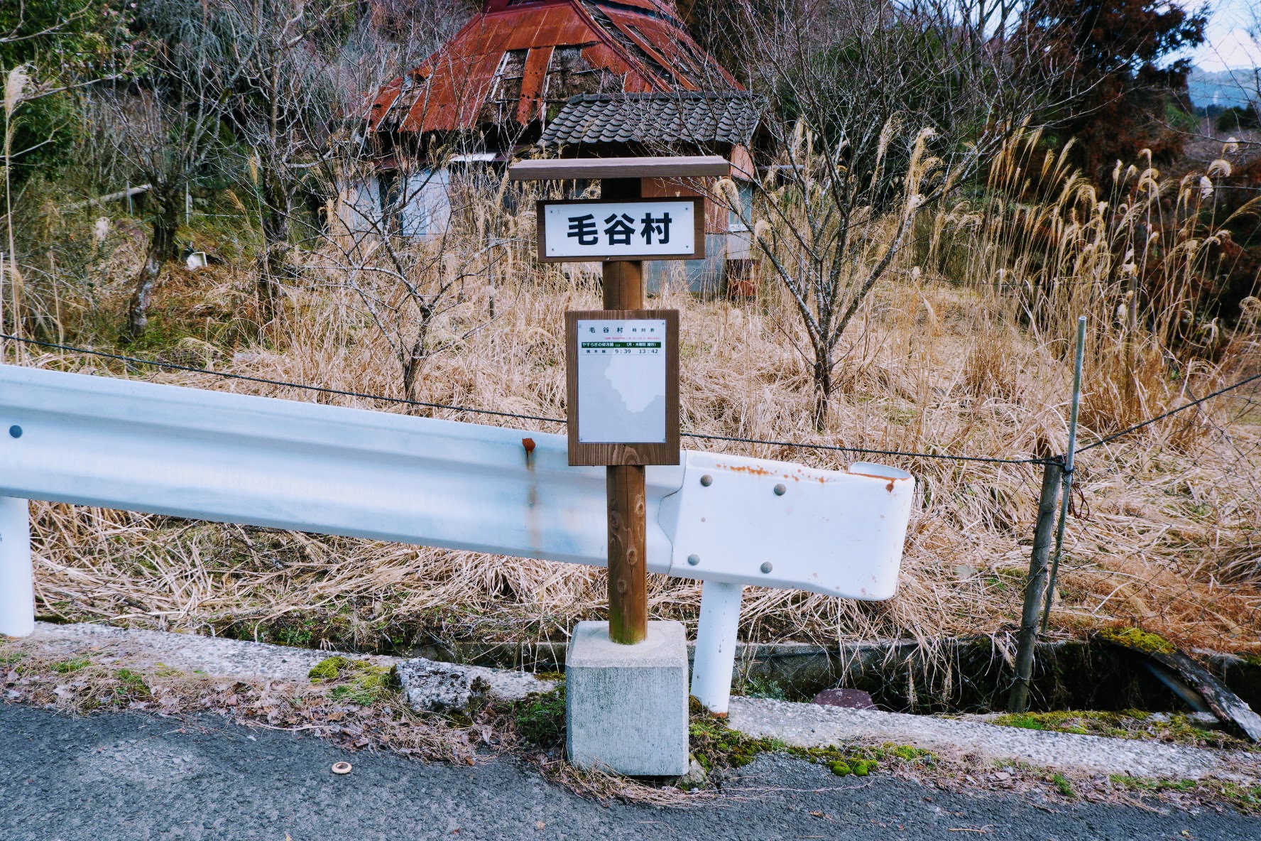 月曜日・木曜日だけバスが来るのでバス停もある