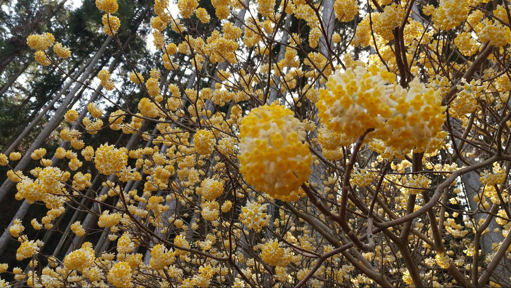 国見町西方寺地区で見られる満開のミツマタ