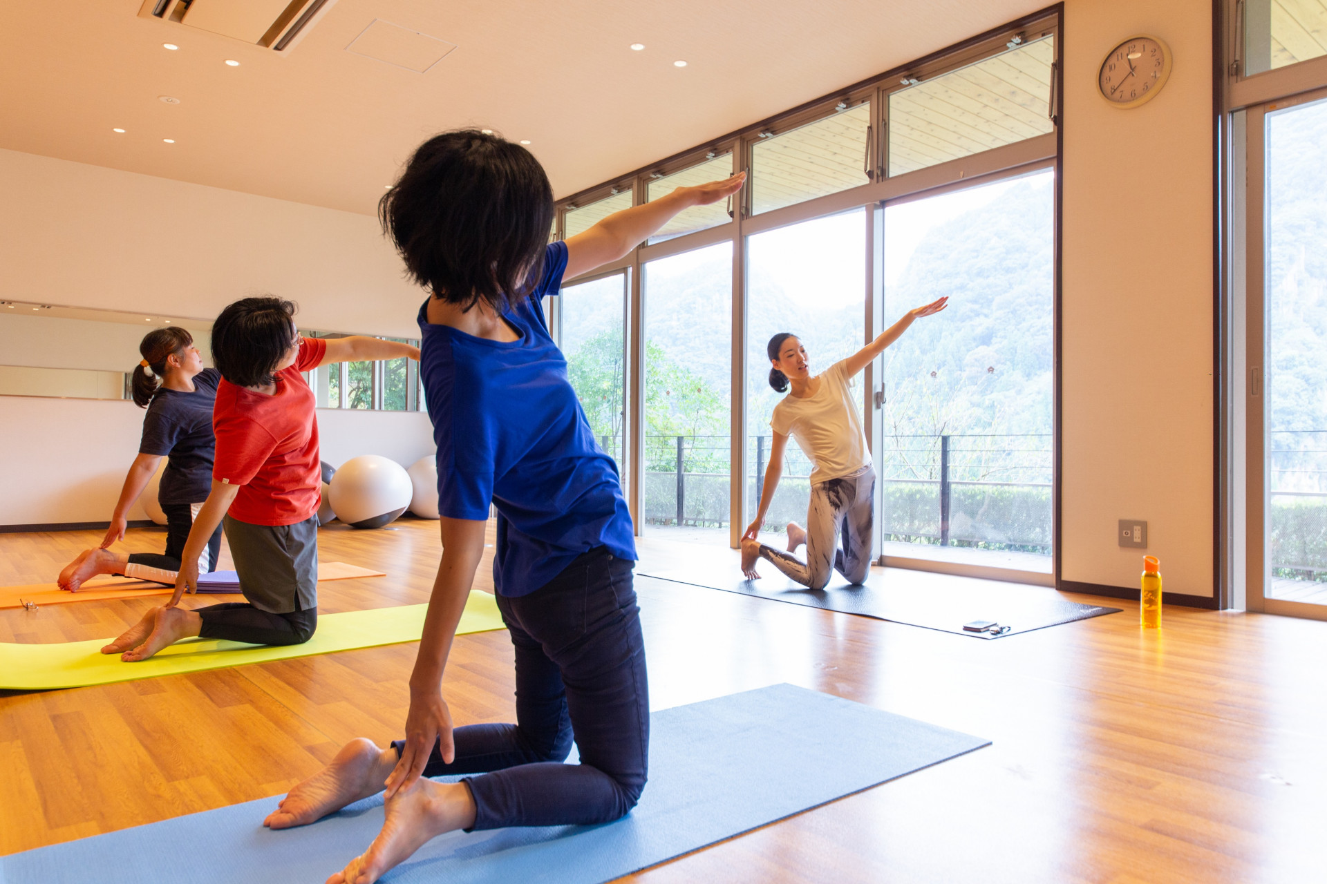 大山町に「うめひびき(https://www.umehibiki.jp/)」という旅館があるのですが、今でこそ予約が取れない宿になってきましたが、当時は開店したてでした。それまでは第三セクター向け宿でしたがJRの改修が入って一気に高級層宿になってしまって、住民との間に距離ができているなあと社長から話を聞いていたので、月に何日か感謝デーを設け、日田市民なら温泉が半額になるキャンペーンを始めたんです。その時にフィットネスルームがあって、ヨガも一緒に1日3回一人1000円でやってみたら結構きてくれて。そこからのご縁が続いていますね。
