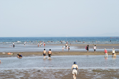 遠浅で小さなお子様も安心して楽しめる海水浴場です。周辺に、オートキャンプ場、ログキャビン、テニスコート、野球もできる運動場を備えており、大人も子どもも楽しめる総合レジャー公園となっています。最近では、海上散歩を楽しめるSUPや、海を眺めながらのお食事を楽しめる砂浜食堂、パークゴルフ場も人気です。