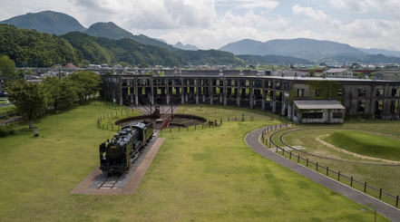 九州で唯一現存する扇型機関庫が残る鉄道公園です。機関庫と転車台は、貴重な鉄道遺産として国登録有形文化財、近代化産業遺産に認定されています。公園内には、「豊後森機関庫ミュージアム」があり、“遊ぶ・学ぶ・楽しむ”をコンセプトに旧豊後森機関庫と鉄道に関する資料の展示や工業デザイナー水戸岡氏の鉄道作品の展示があります。さらには、1周316mのコースを走るミニ列車もあり、親子で楽しめる公園です。